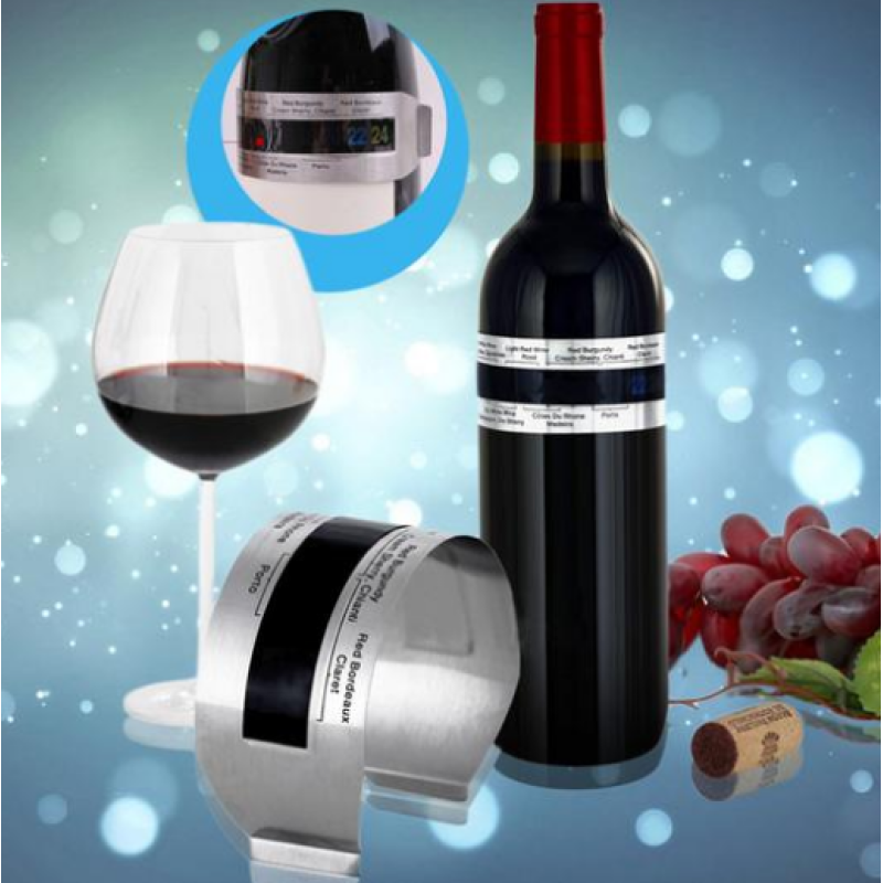 product description: Each wine has its own drinking temperature. To taste the taste of red wine, be sure to pay attention to the temperature of the red wine. The stainless steel red wine thermometer uses liquid crystal temperature measurement technology as a thermometer designed for alcoholic beverages. It can measure the current temperature of various wines and let you taste the wine at the temperature of adaptation. It is an auxiliary product for wine lovers.