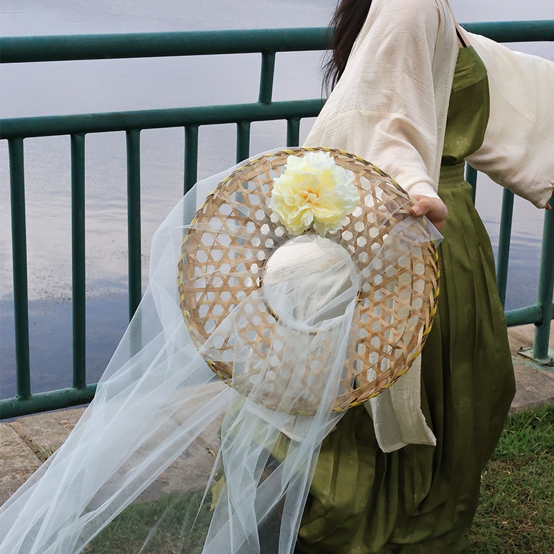 Color: silk gauze cap finished product 1 piece, silk gauze cap pink finished product 1 piece, silk gauze cap mint green finished product 1 piece, Willow hat finished product 1 piece, pink Poplar finished product Cap 1 piece, A White finished Poplar hat, a jackscrew yarn bamboo hat ornamental flower