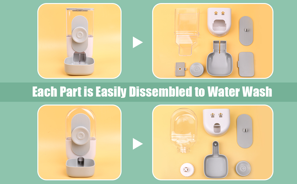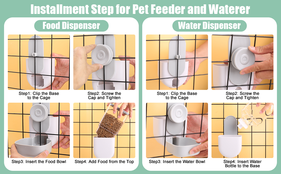 [Easy Disassembled and Installment] This pet food water dispenser set is made of high quality plastic, easy detachable for water wash to provide your pet with a tidy eating environment. It is suitable for most small pet cages and very convenient to add food and water without disassembling.