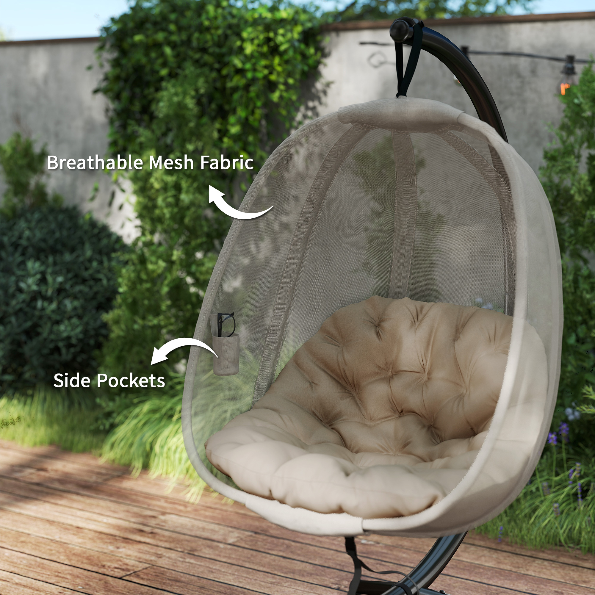 A coveted spot to relax by yourself, in comfort, all day long? Yes please. This egg chair with stand is must to have in the garden, on the patio - or even in the bedroom or lounge if you like. Our egg hanging chair comes in two parts: the fabric seat and the metal frame. The seat is removable so it can be stored away. The powder-coated steel is fully supportive, with three legs to ensure balance. And this swinging egg chair also comes complete with a thick padded cushion for comfort.