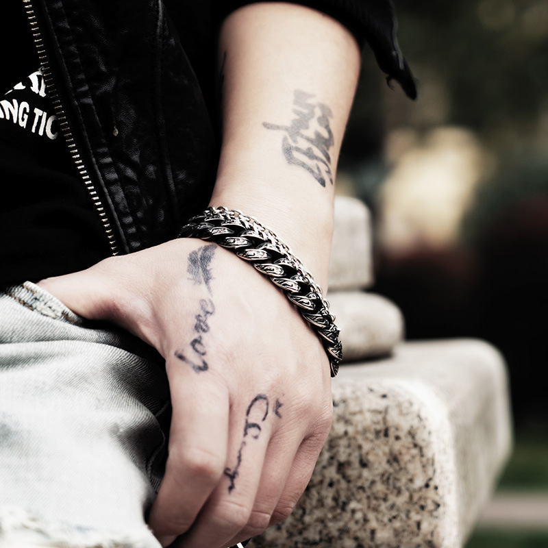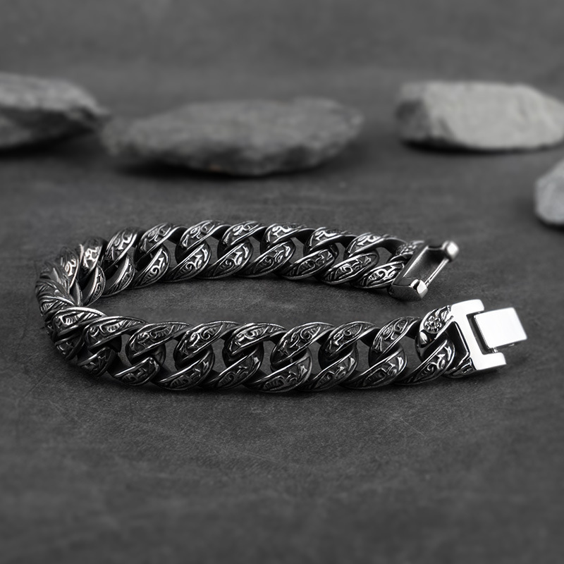 Harajuku-style Black Retro Minimalist Carved Bracelet