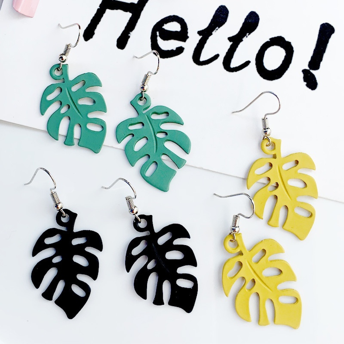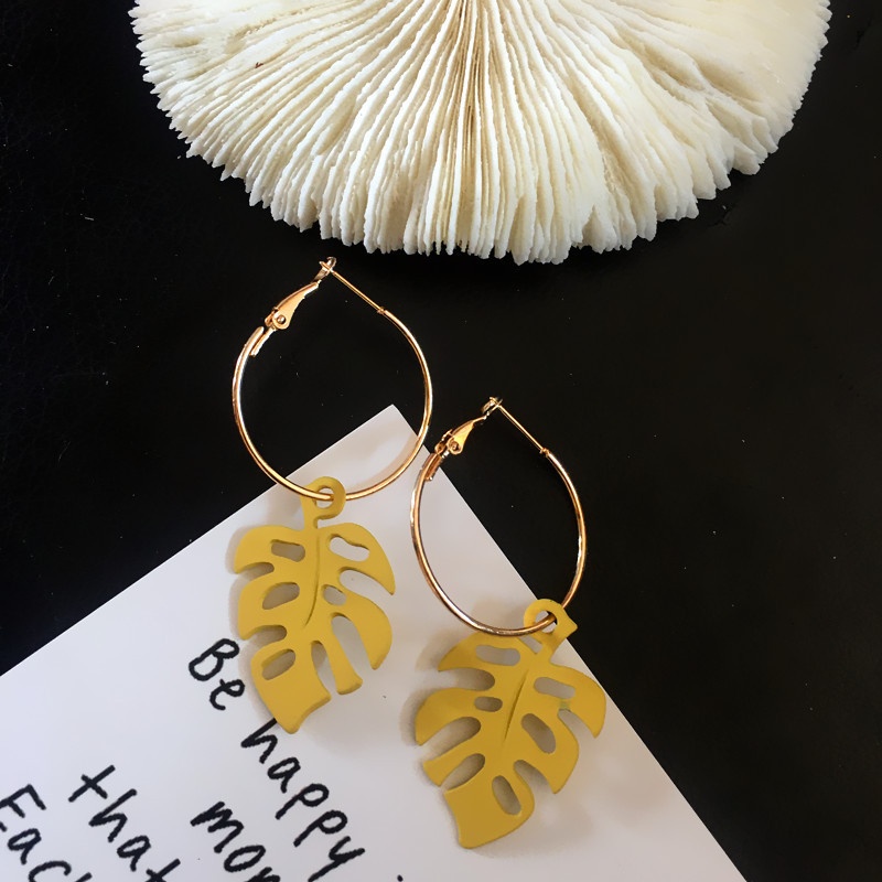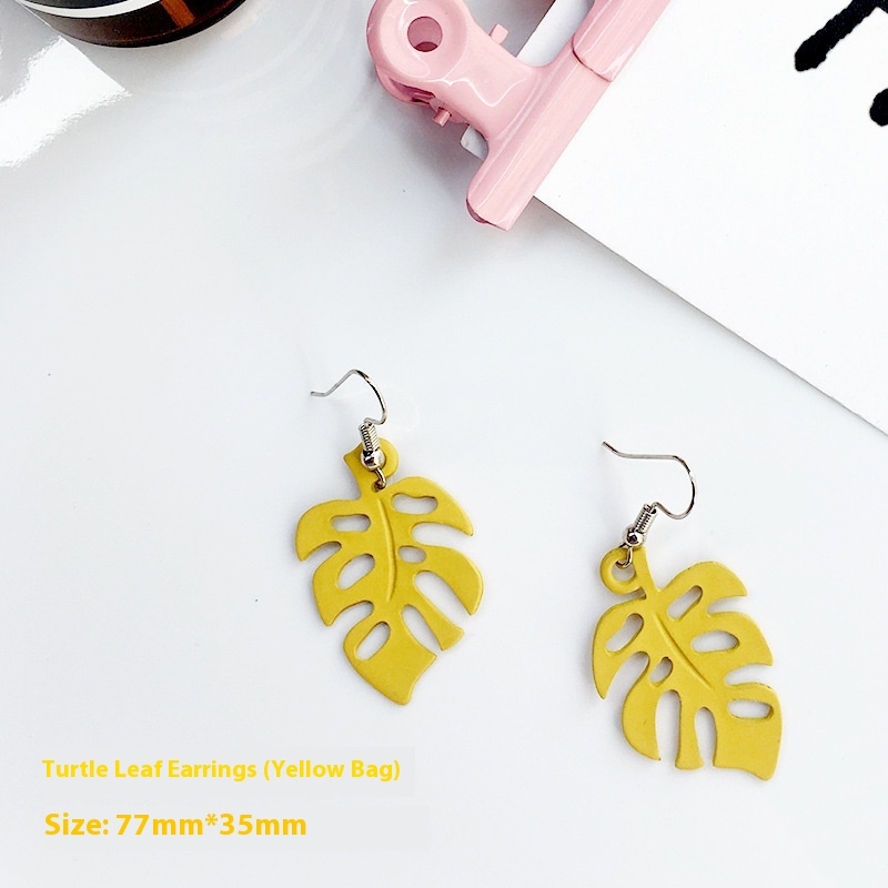 Color: green leaf ear hook, yellow leaf ear hook, gray leaf ear hook, black leaf ear hook, pink leaf ear hook, green ear clip, yellow ear clip, gray ear clip, black ear clip, pink ear clip