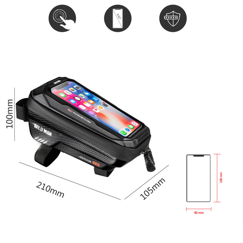 Function: installed on the bicycle to place personal belongings, the mobile phone can be used on the touch screen