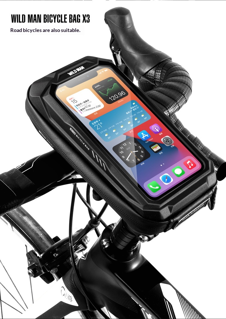 Function: Mounts on the bicycle handlebar and securely holds a phone while still allowing full touchscreen functionality