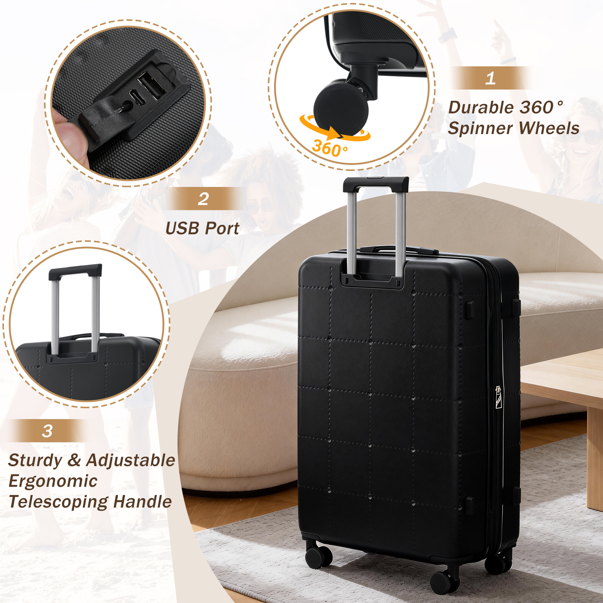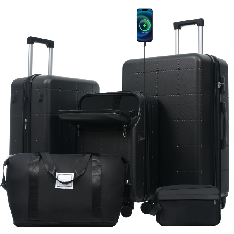 Product Name:Hardside Luggage Set 5 Piece with Bags,20IN Half-opening Carry on Luggage with USB Port, Expandable 24IN 28IN Luggage with Double Spinner Wheels TSA Lock