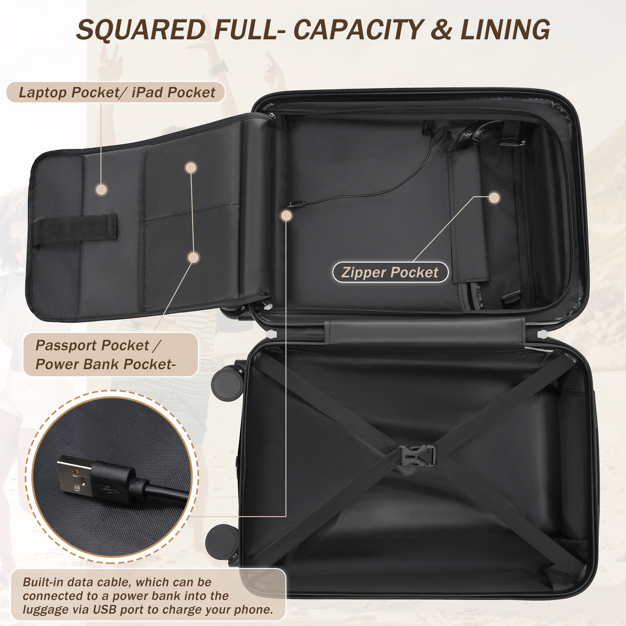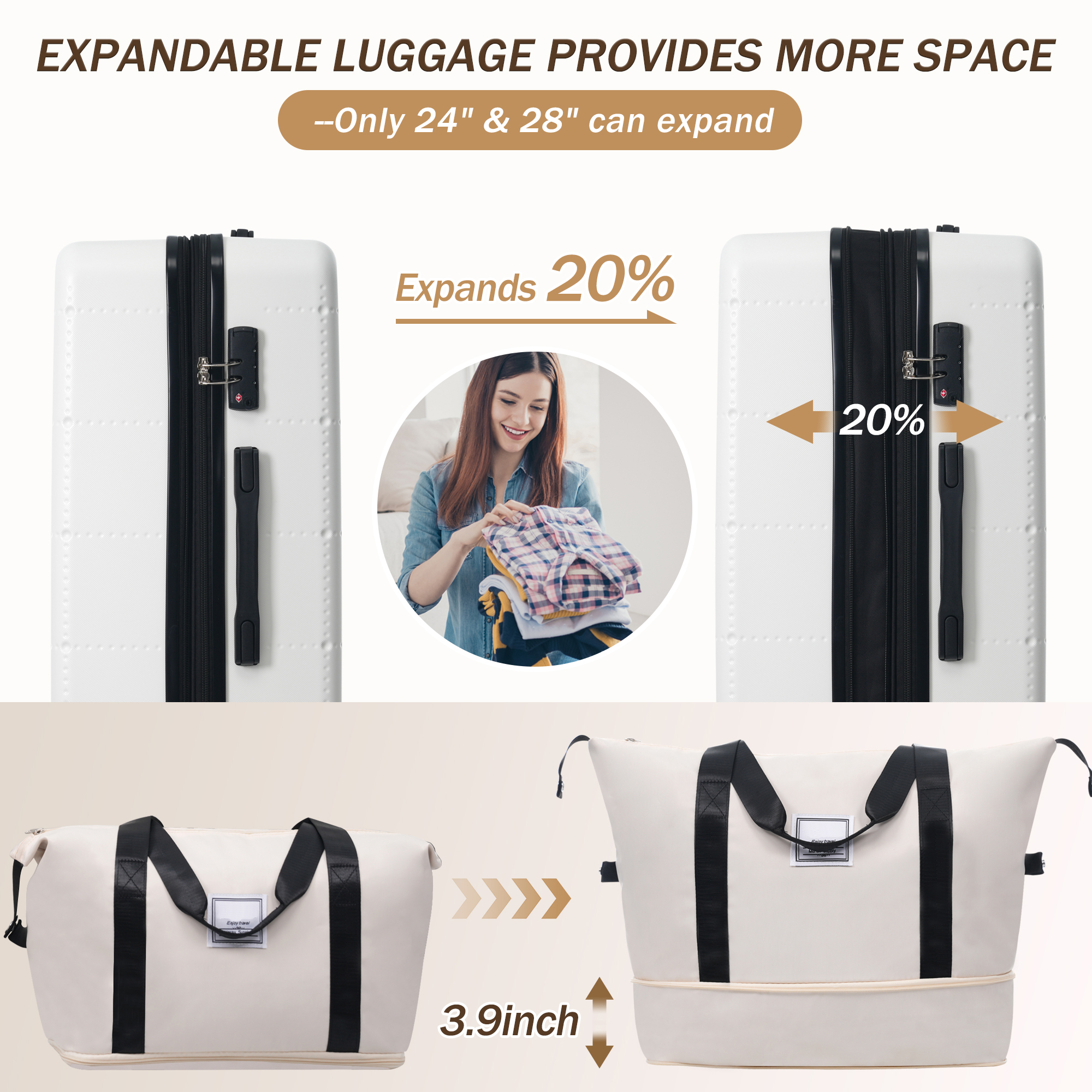 Product Name:Hardside Luggage Set 5 Piece with Bags,20IN Half-opening Carry on Luggage with USB Port, Expandable 24IN 28IN Luggage with Double Spinner Wheels TSA Lock