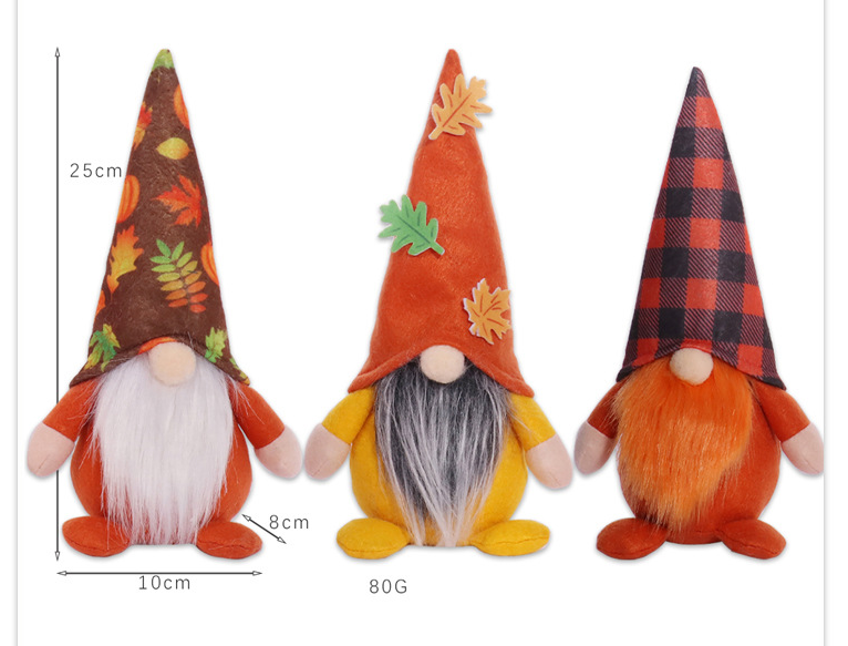 Handmade Dwarf decorations - The bodies and hats of these Thanksgiving Dwarf dolls are made of ultra-soft non-woven PP cotton, with wooden noses and white whiskers. They have a heavy base that provides extra stability and is not prone to tipping over.