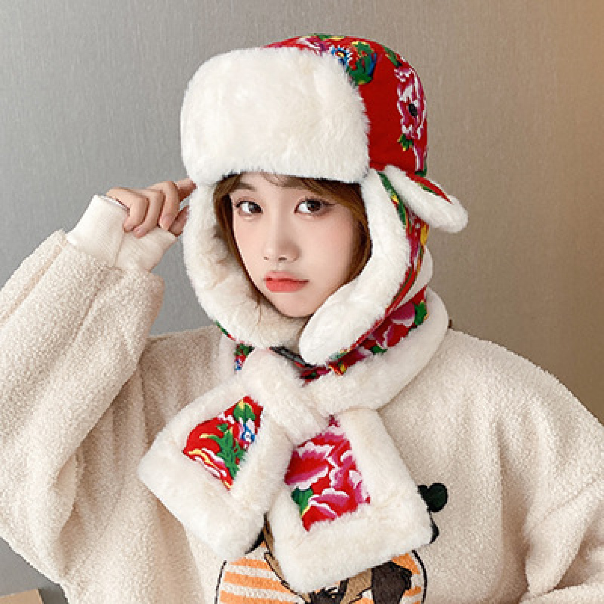 Color: Color, corduroy monocular Burgundy, black, red scarf [for adults and children], color mask, red hat + flower mask, black hat + flower mask