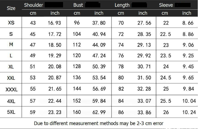 Size: XS,S,M,L,XL,2XL,3XL,4XL,5XL