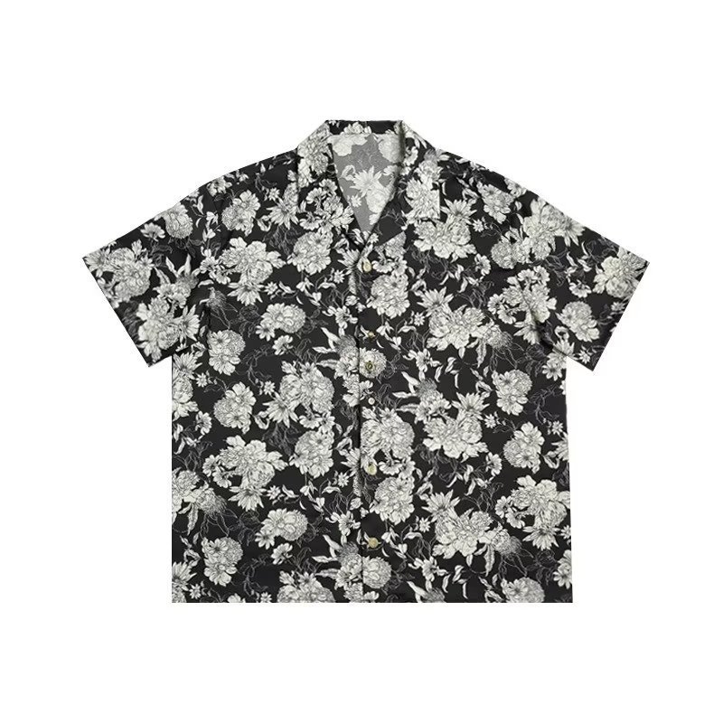 Hawaiian Black And White Camellia Summer New Short Sleeve Shirt