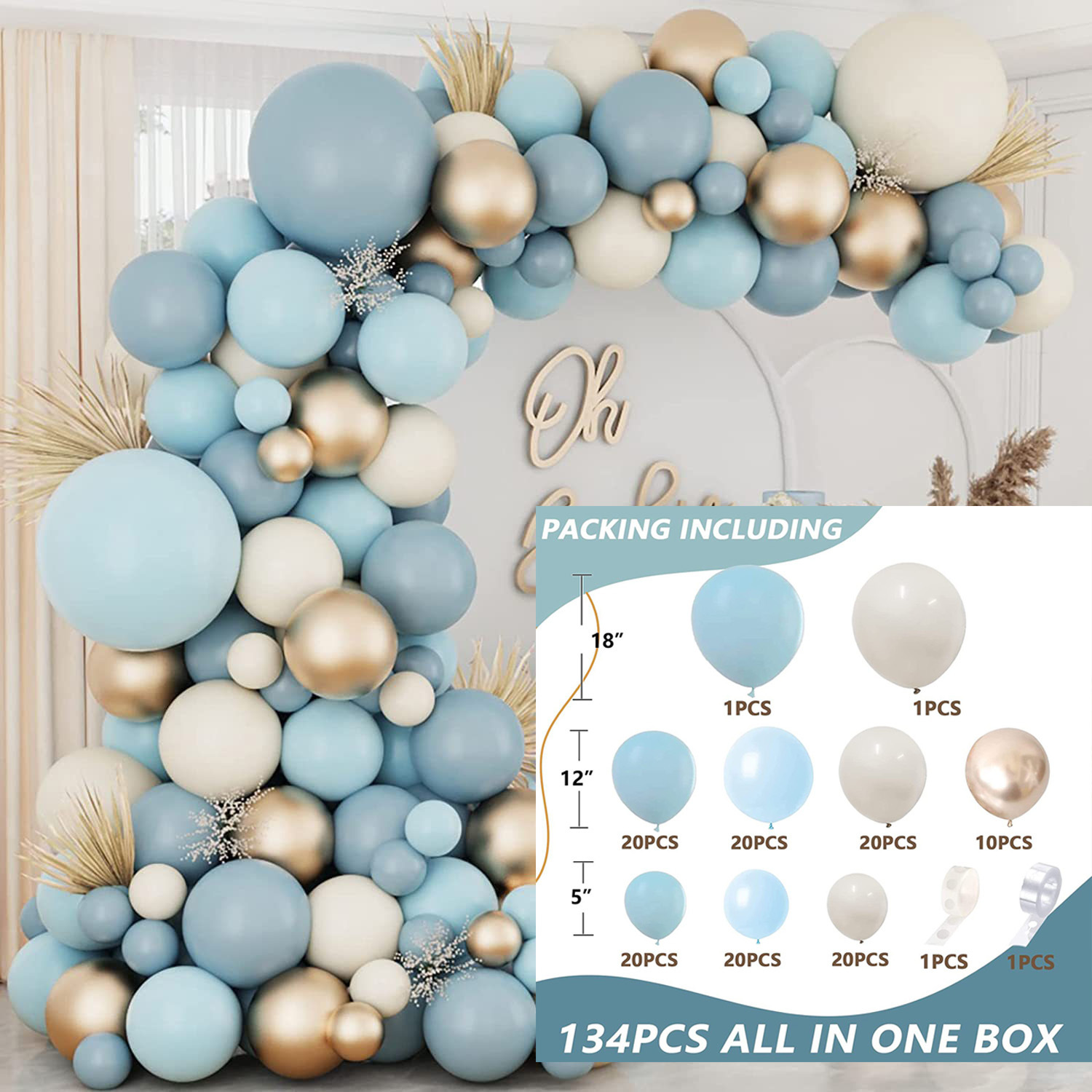 Product information:Material: LatexType: Decorated boom ballShape: RoundSpecification :134PCSColor: Macaron, matte color