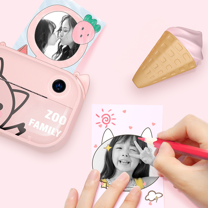 Packing list: printing camera x1, printing paper X1, sticker X1, data cable X1, pencil set X1, sticker book X1, lanyard X1