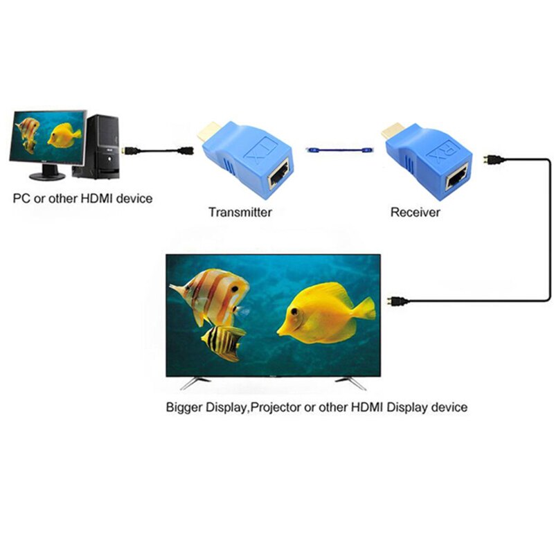 This kind of HDMI Extender by Cat-5e/6 uses single piece CAT-5e/6 cable to extend the HDTV display up to 30 meters for 1080P.it not only breaks the limitation of the HDMI cable transmission length,but also CAT-5e/6 has more flexibility and convenience in cable construction