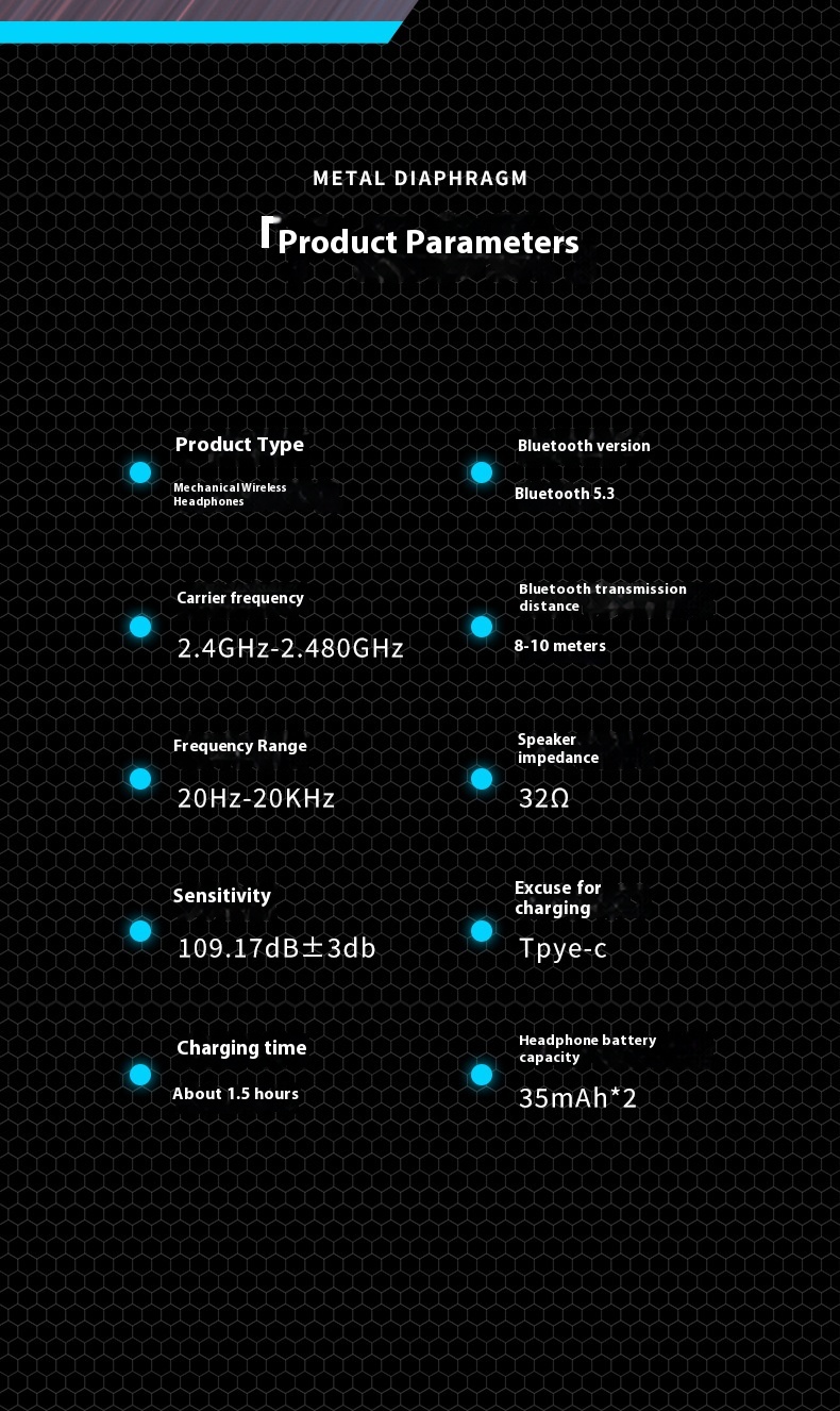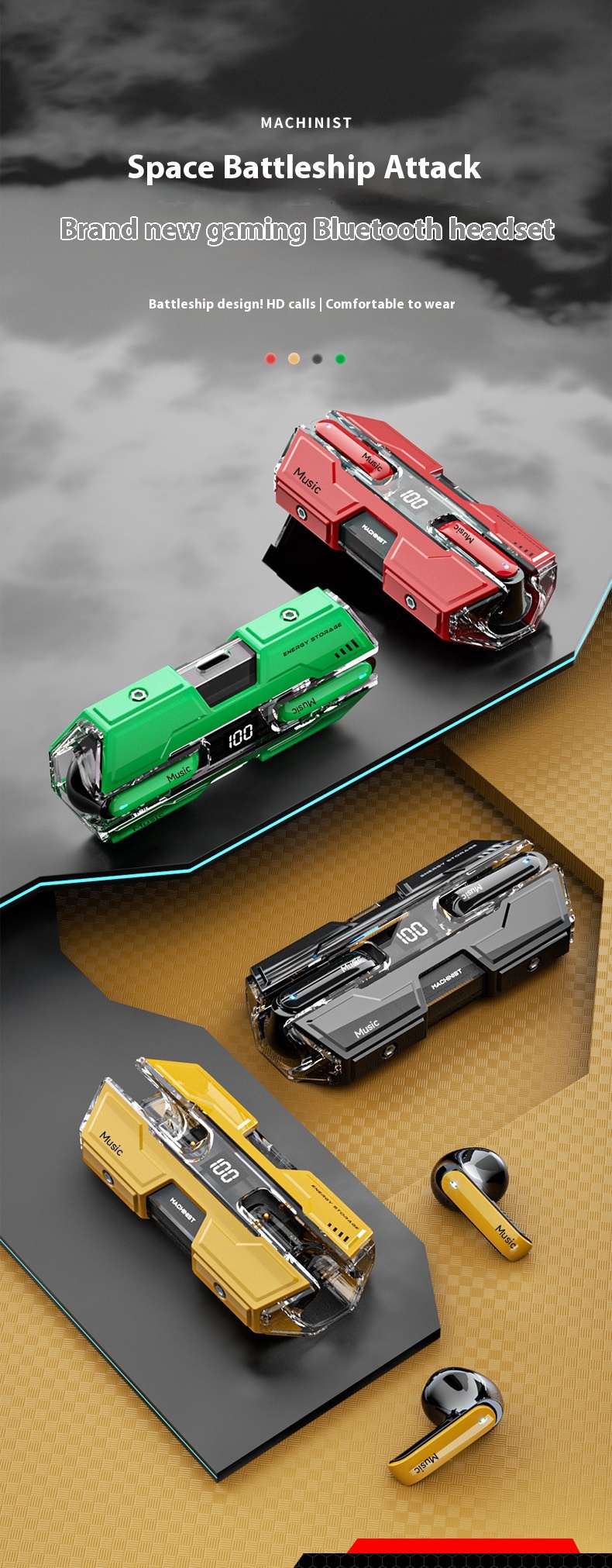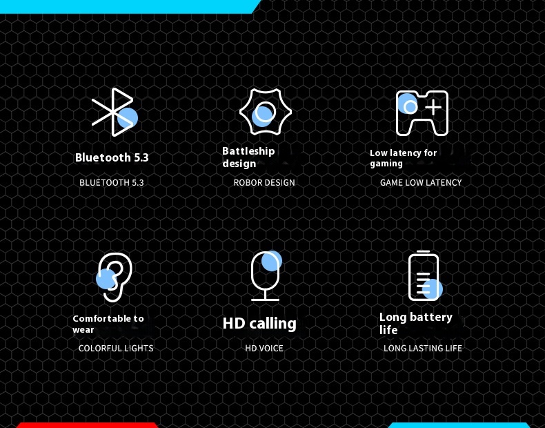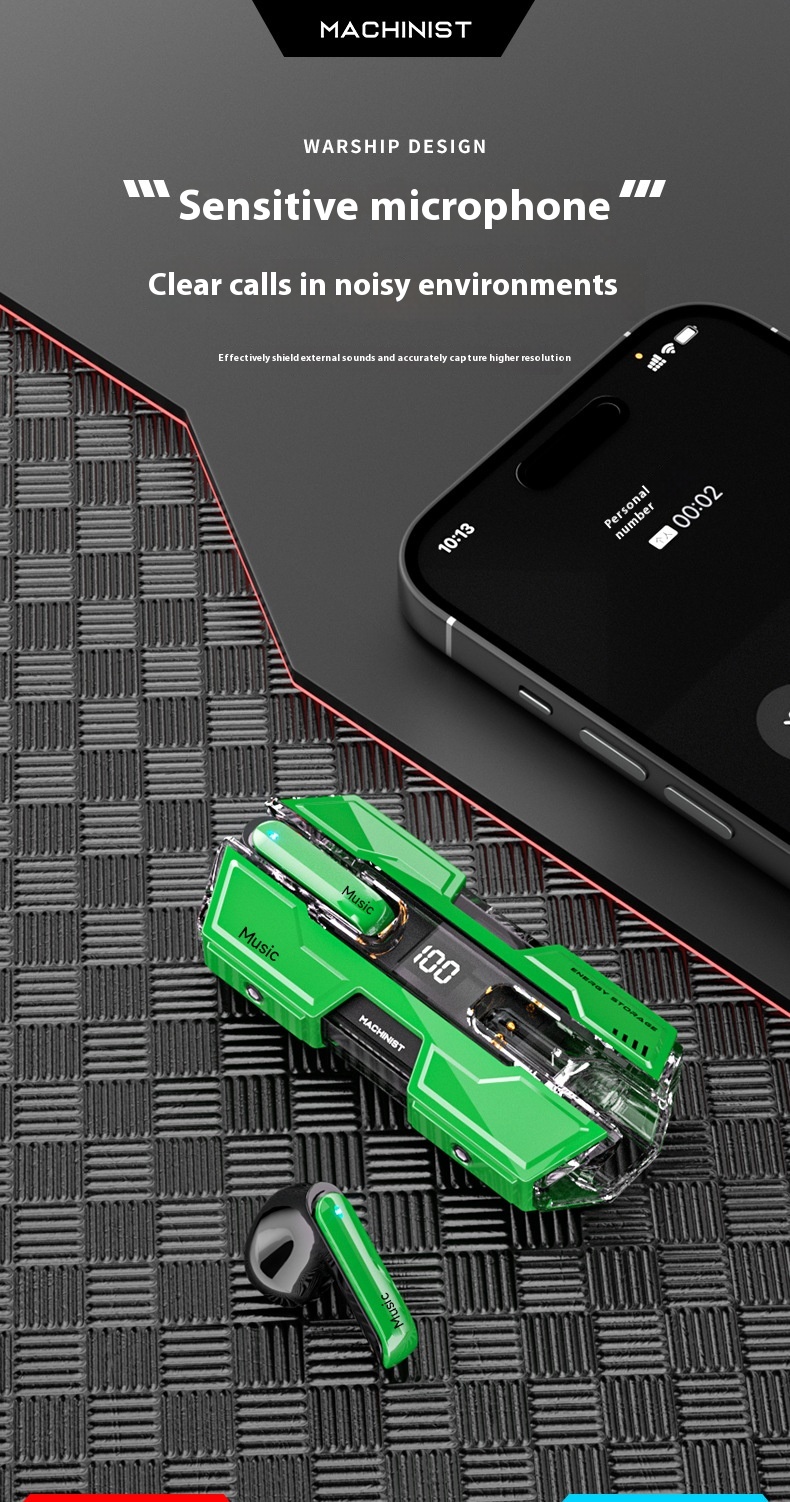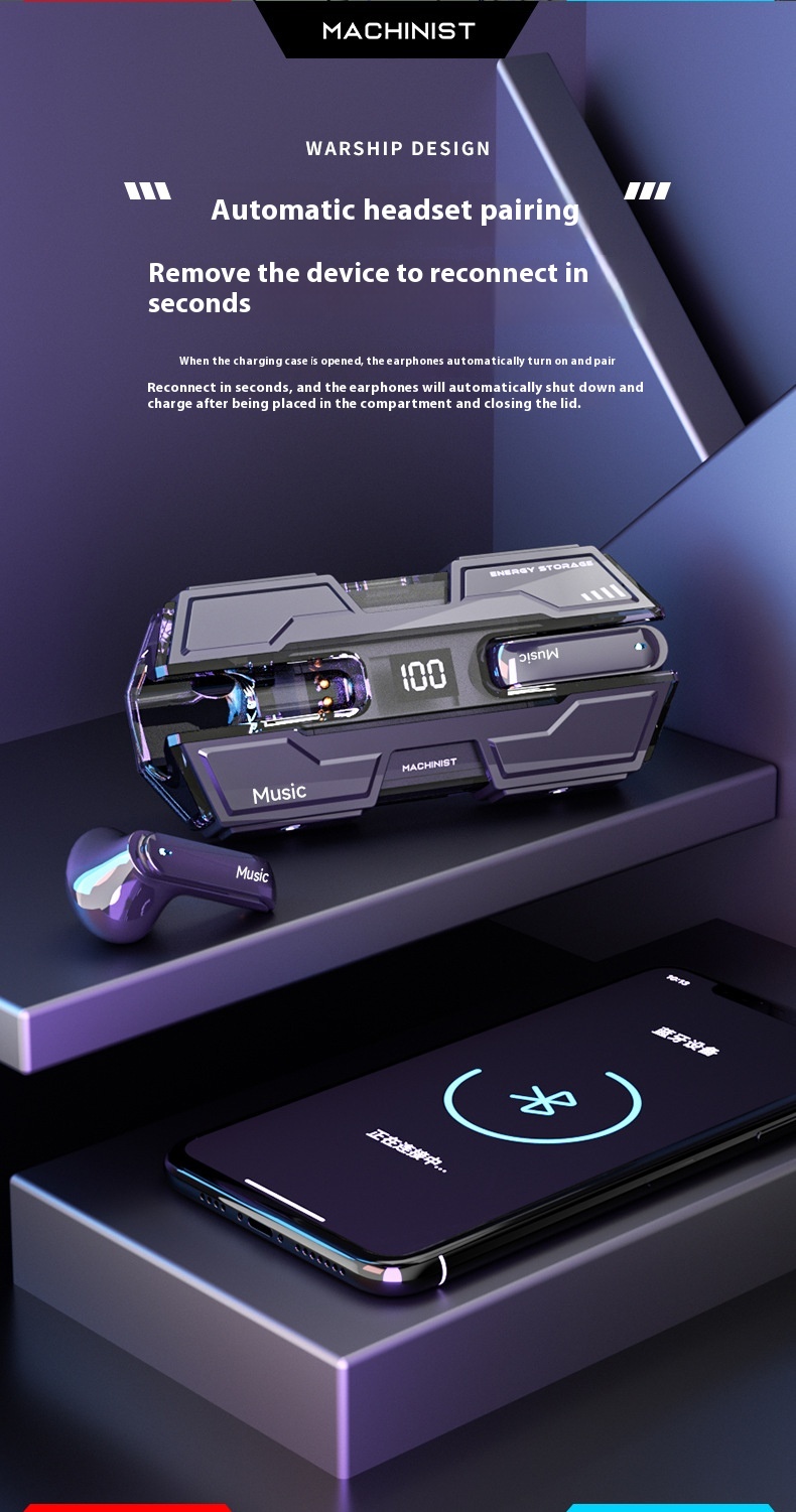 Function: waterproof, noise reduction, ultra-long life battery, call function, voice control, support music, digital display screen, e-sports low latency