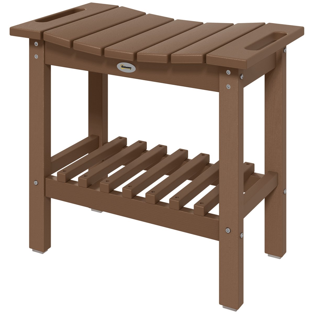 HDPE Shower Bench, Waterproof Shower Stool With Handle, Storage Shelf, Non-Slip Pads For Indoor Outdoor, Brown