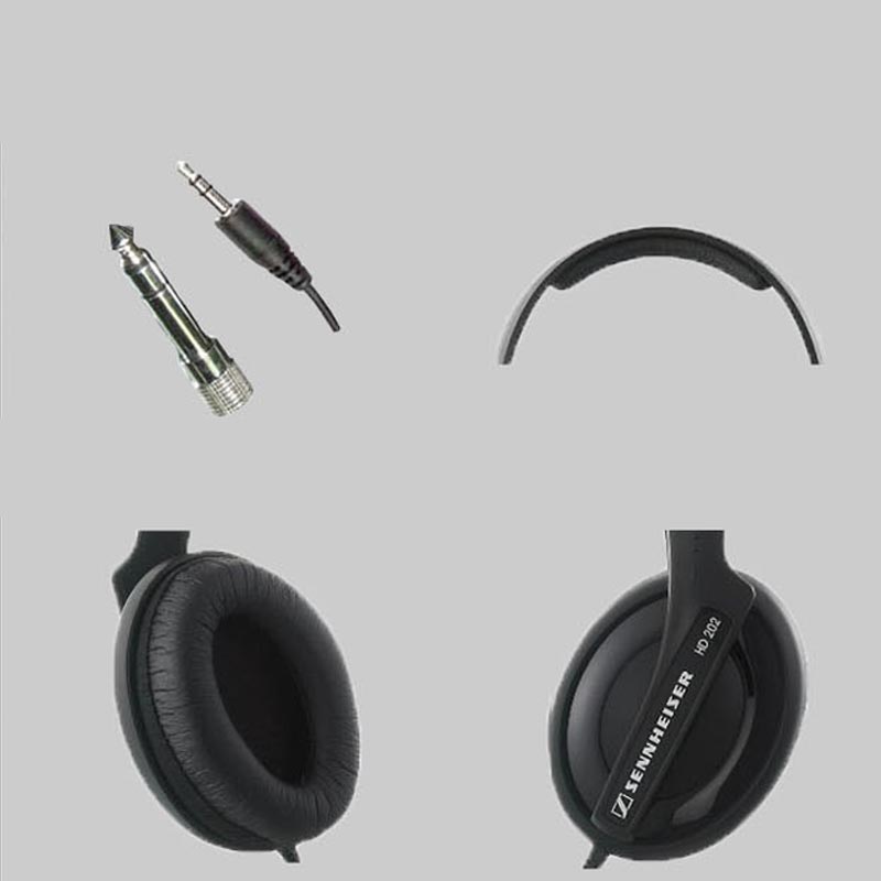 A pair of HD202II headphones;-a 3.5mm/6.3mm stereo conversion plug
