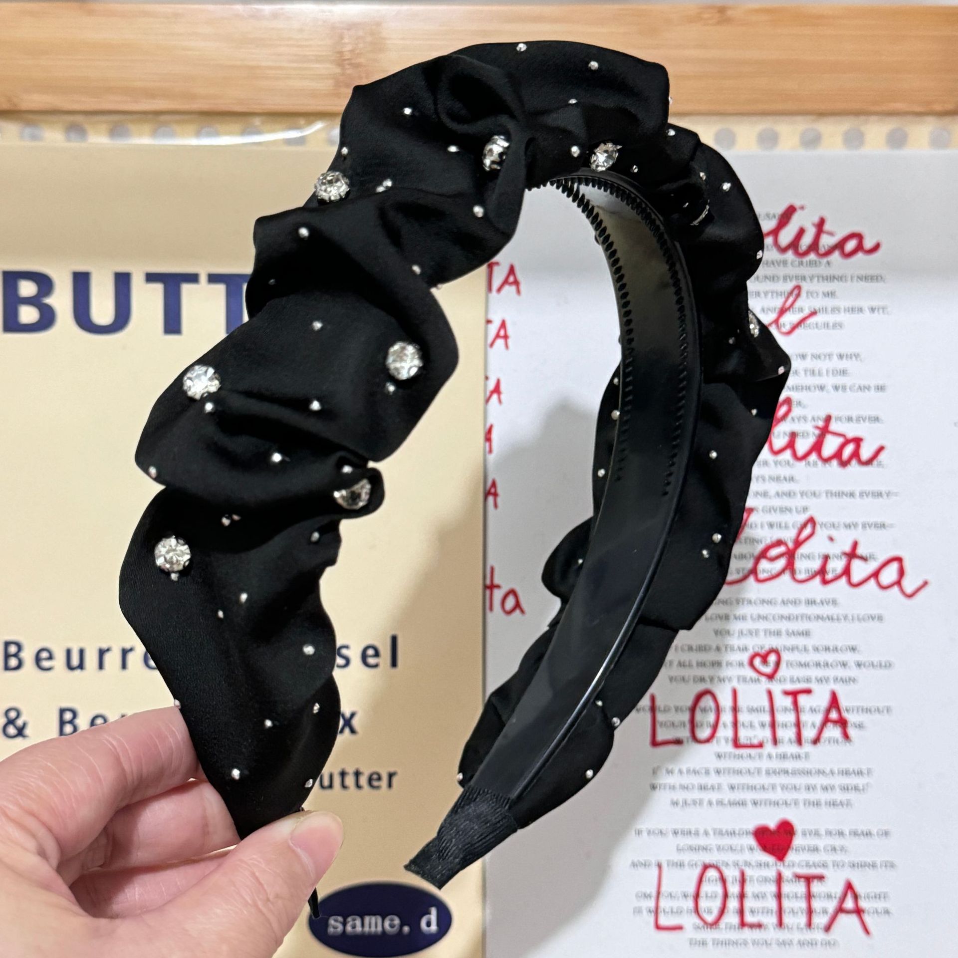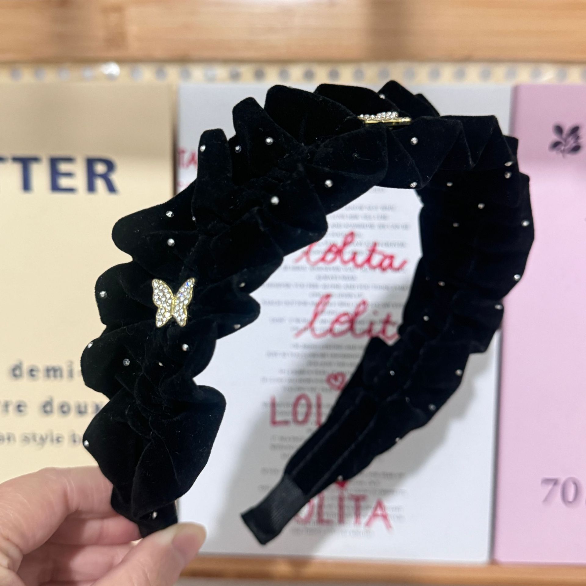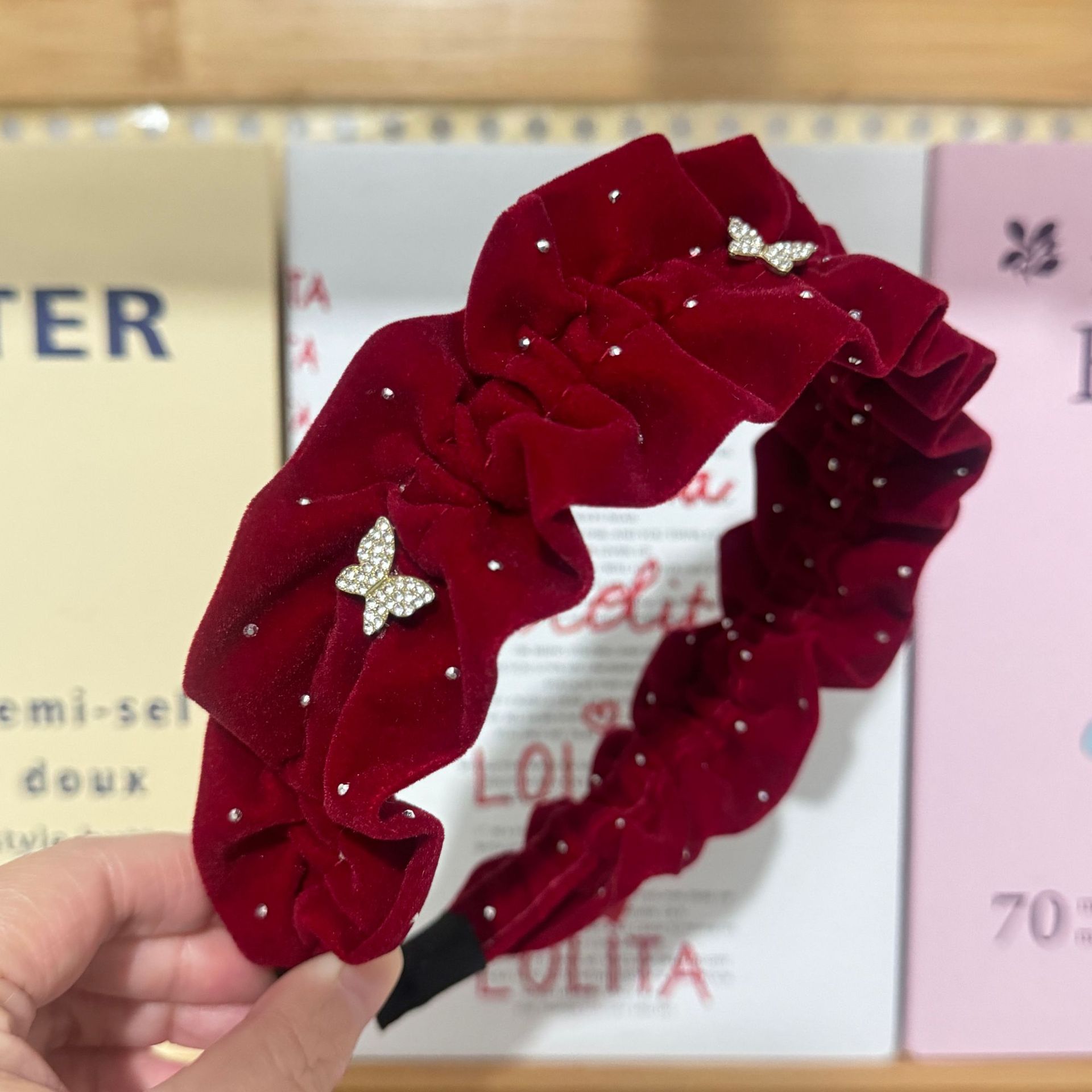 Color: Black-Starry Sky hair band (with small diamond), white-Starry Sky hair band (with small diamond), khaki-Starry Sky hair band (with small diamond), black-Starry Sky hair B (without small diamond), white-Starry Sky hair band B (no small diamond), khaki-Starry Sky hair band B (no small diamond), black-Pearl Starry Sky hair band, Black Velvet Starry Sky hair band, red velvet Starry Sky hair band, black velvet wheat hair band, black velvet bow hair band (4.5cm wide), red velvet bow hair band (4.5cm wide), black-velvet bow headband (6cm wide), black-chaebo gold headband, black-rhinestone twisted headband (with small diamond), white-rhinestone twisted headband (with small diamond), khaki-rhinestone twisted headband (with small diamond), black velvet butterfly headband, red velvet butterfly headband, black woven crystal headband