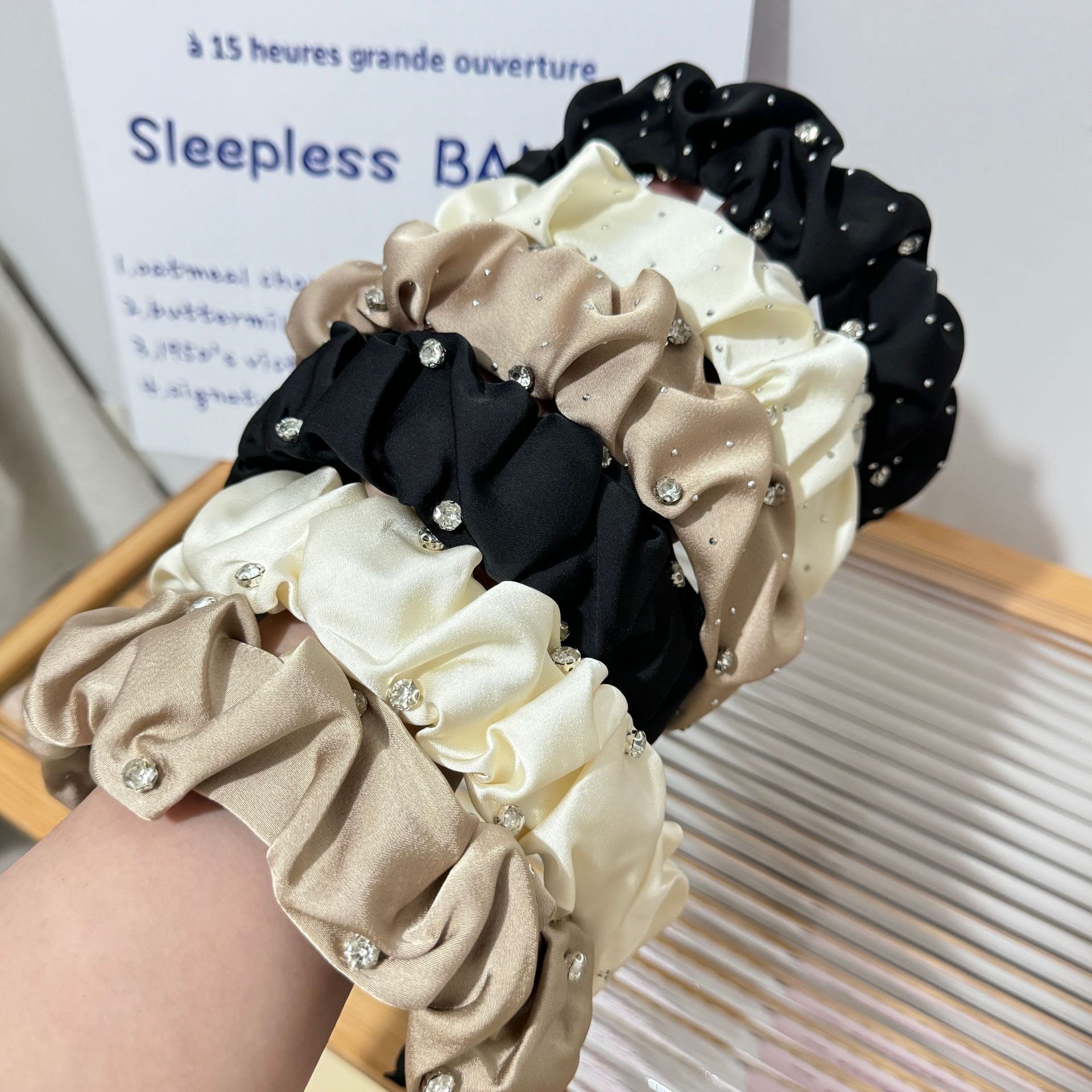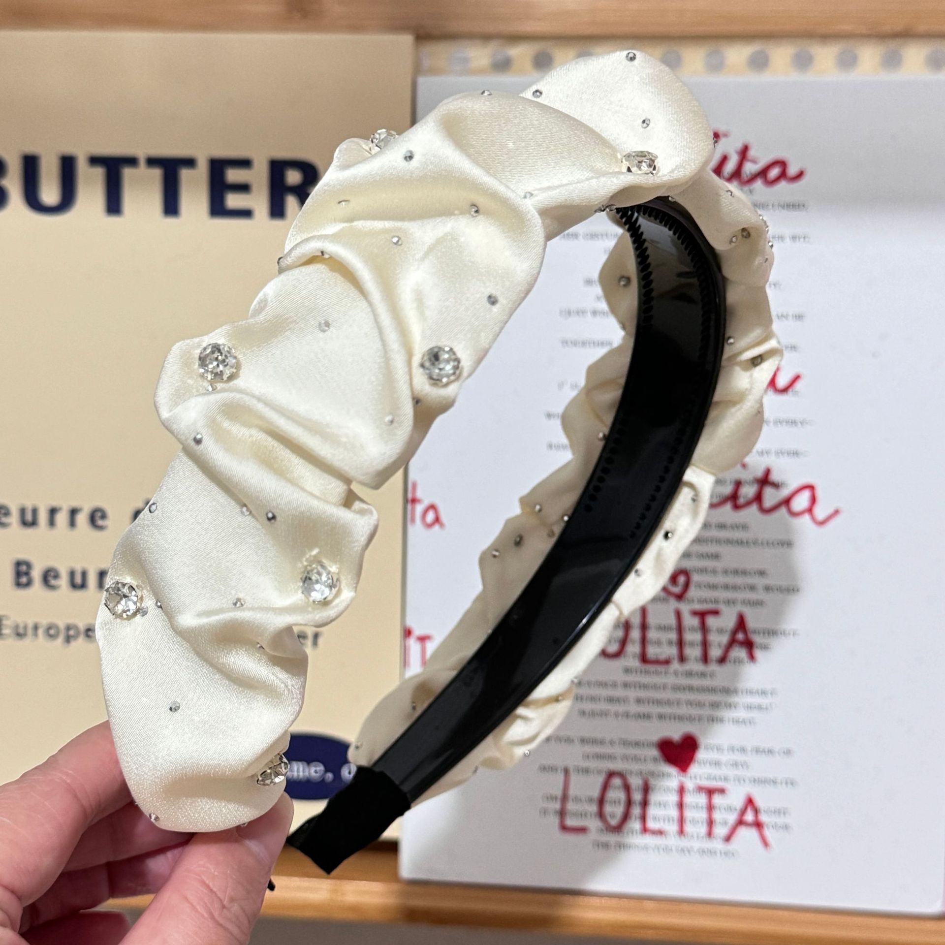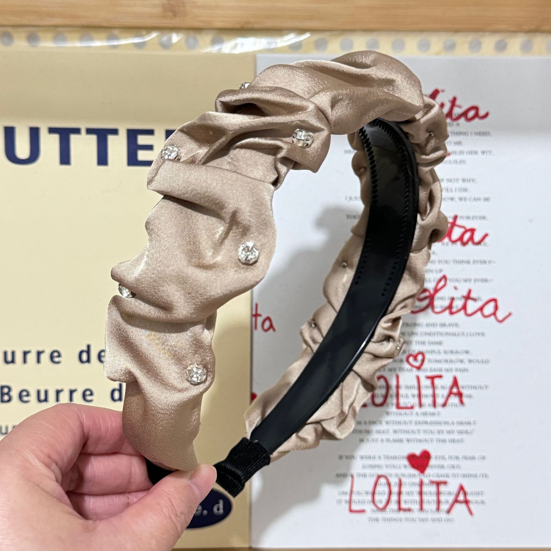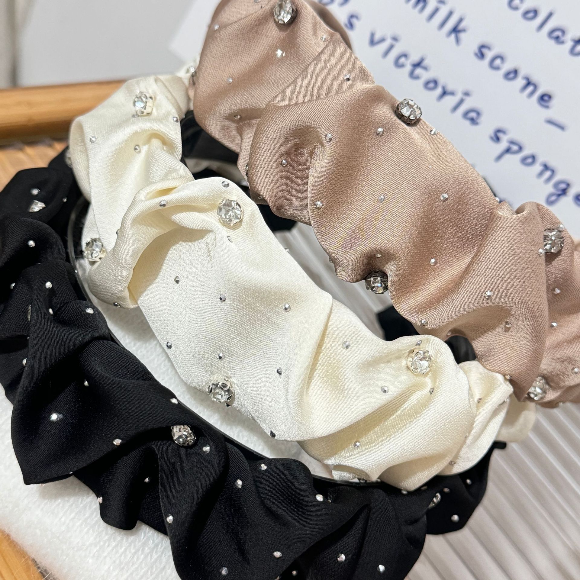 Color: Black-Starry Sky hair band (with small diamond), white-Starry Sky hair band (with small diamond), khaki-Starry Sky hair band (with small diamond), black-Starry Sky hair B (without small diamond), white-Starry Sky hair band B (no small diamond), khaki-Starry Sky hair band B (no small diamond), black-Pearl Starry Sky hair band, Black Velvet Starry Sky hair band, red velvet Starry Sky hair band, black velvet wheat hair band, black velvet bow hair band (4.5cm wide), red velvet bow hair band (4.5cm wide), black-velvet bow headband (6cm wide), black-chaebo gold headband, black-rhinestone twisted headband (with small diamond), white-rhinestone twisted headband (with small diamond), khaki-rhinestone twisted headband (with small diamond), black velvet butterfly headband, red velvet butterfly headband, black woven crystal headband