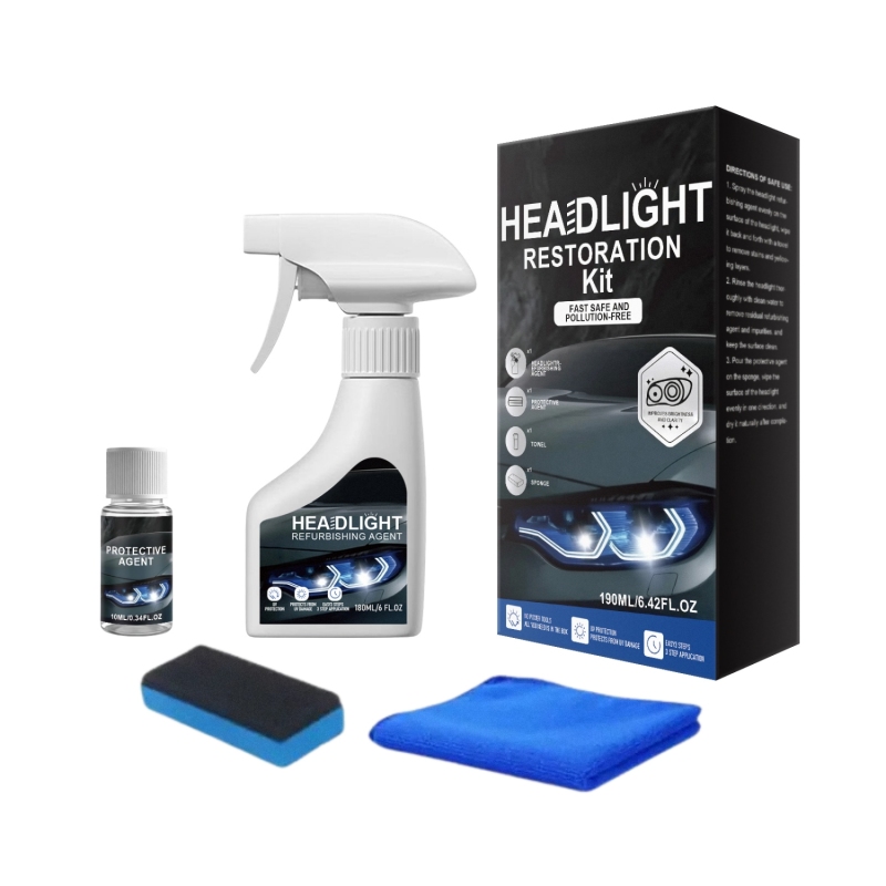 Headlight repair polishing agent: 180ml*1, headlight protective agent: 10ml*1, towel *1, sponge *1.