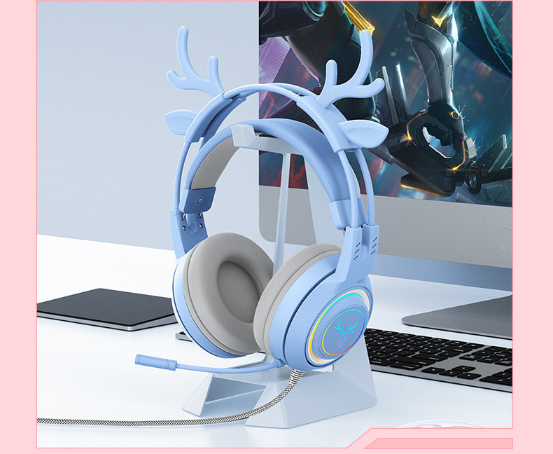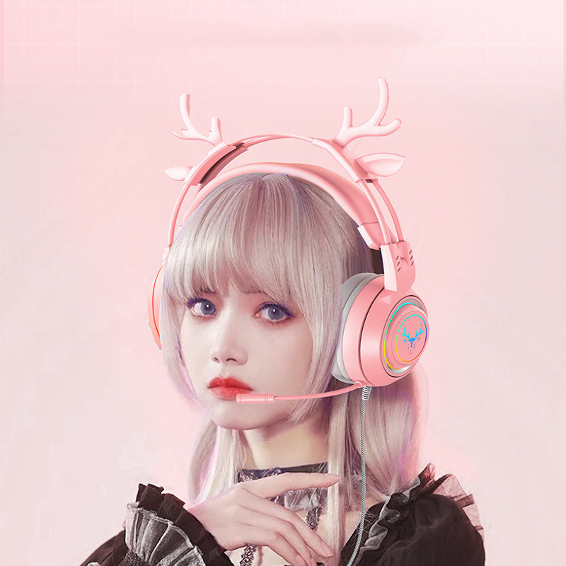Color: pink deer ear light-emitting headphones with packaging, blue deer ear light-emitting headphones with packaging, black deer ear light-emitting headphones with packaging, purple deer ear light-emitting headphones with packaging.
