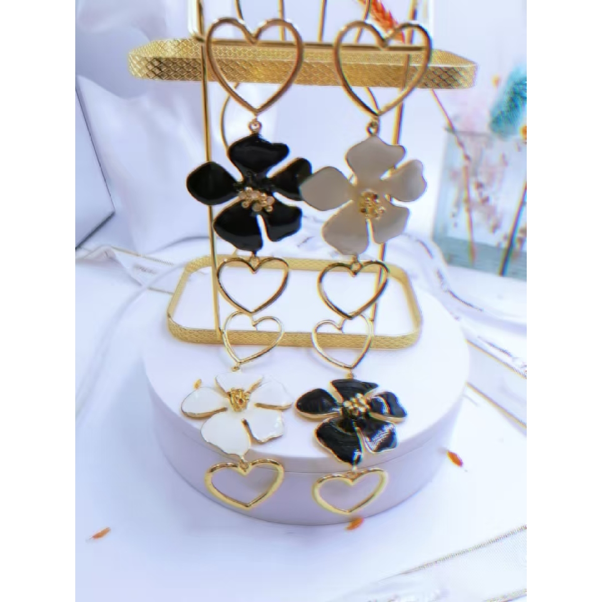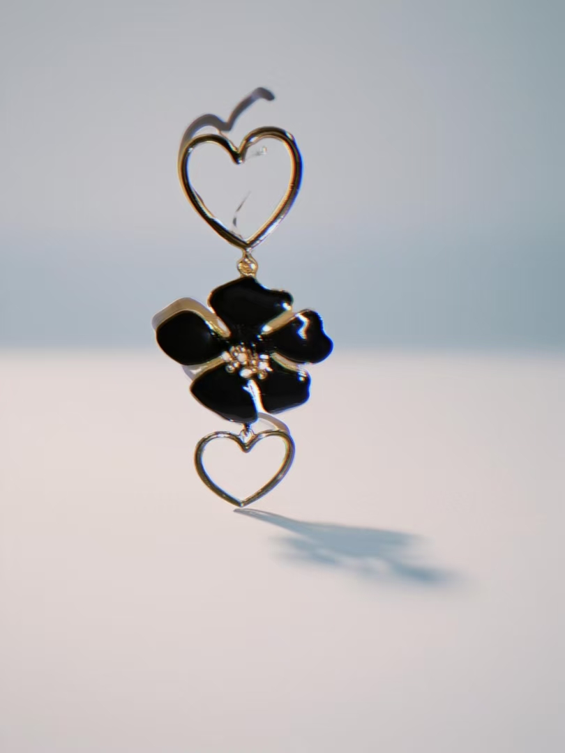 Heart & Flower Double Layer Dangle Earrings