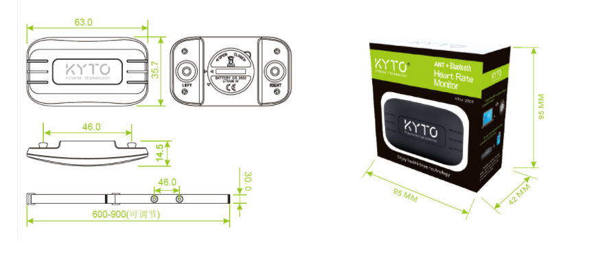 Product features One-to-one ANT+ and Bluetooth 4.0 heart rate transmitter belt, the chest strap is removable and washable, a product with R-value