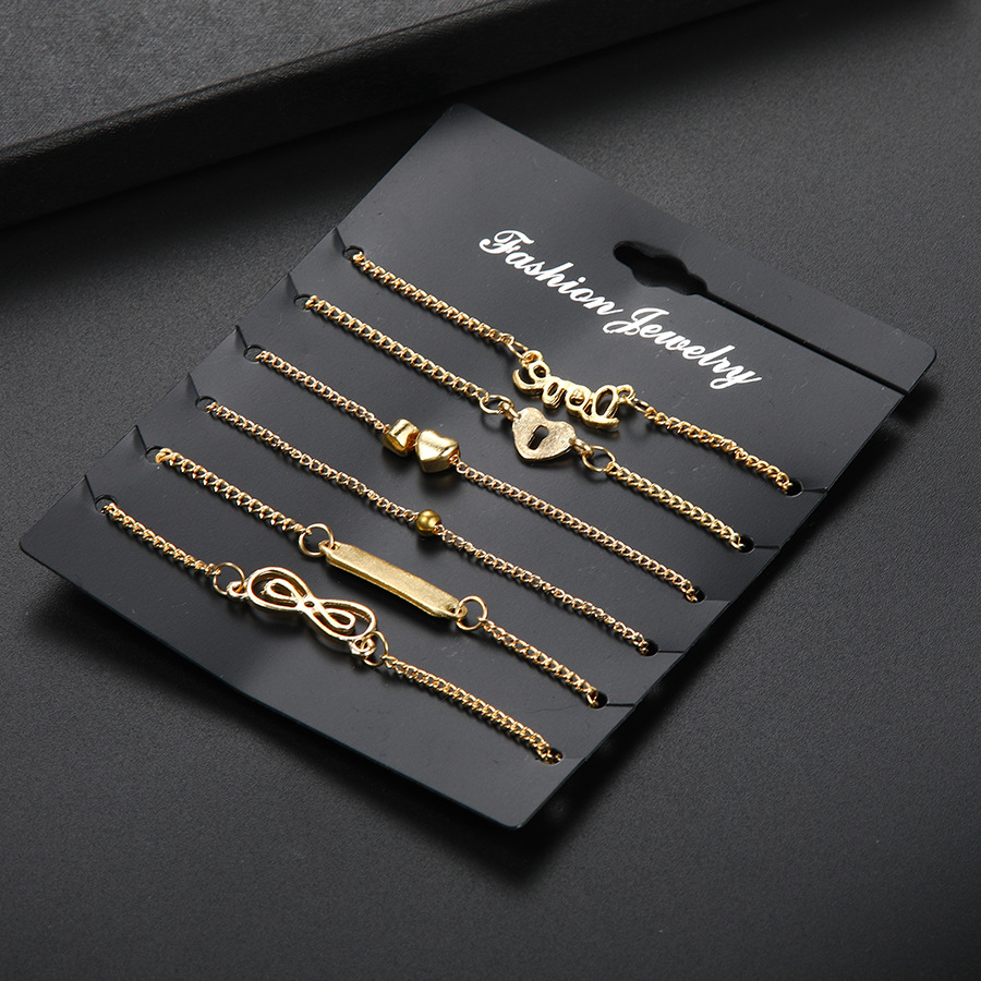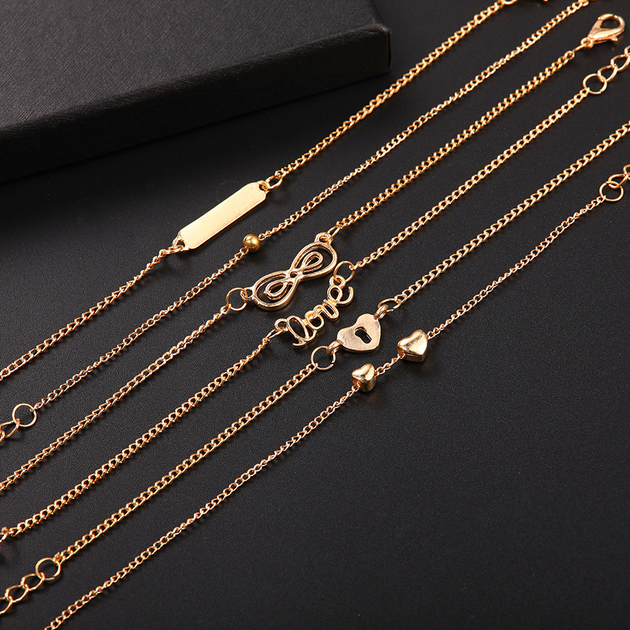 Heart-Shaped 8-Character Love Six-Piece Anklet Female