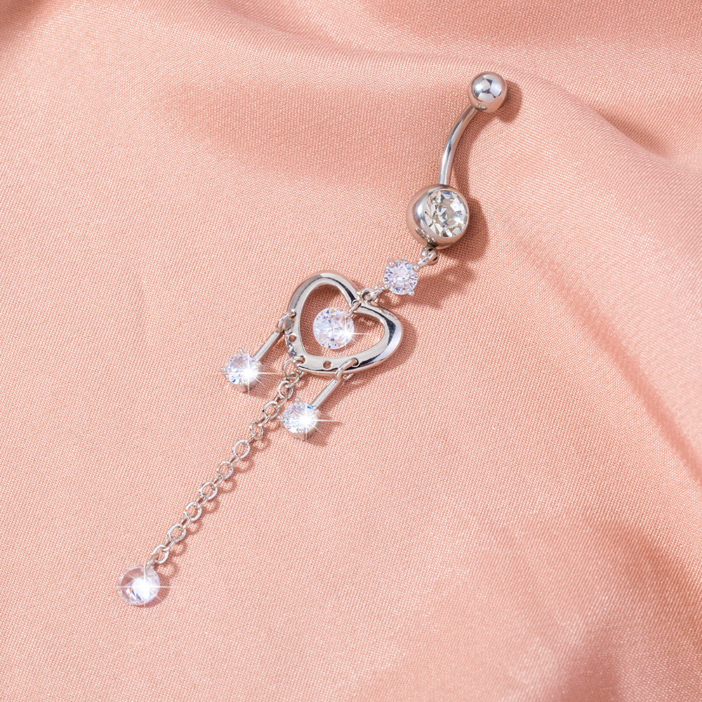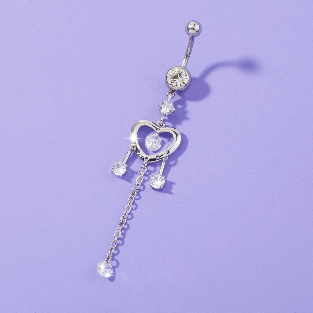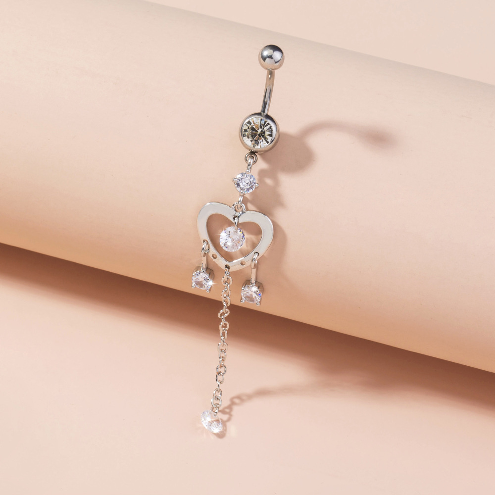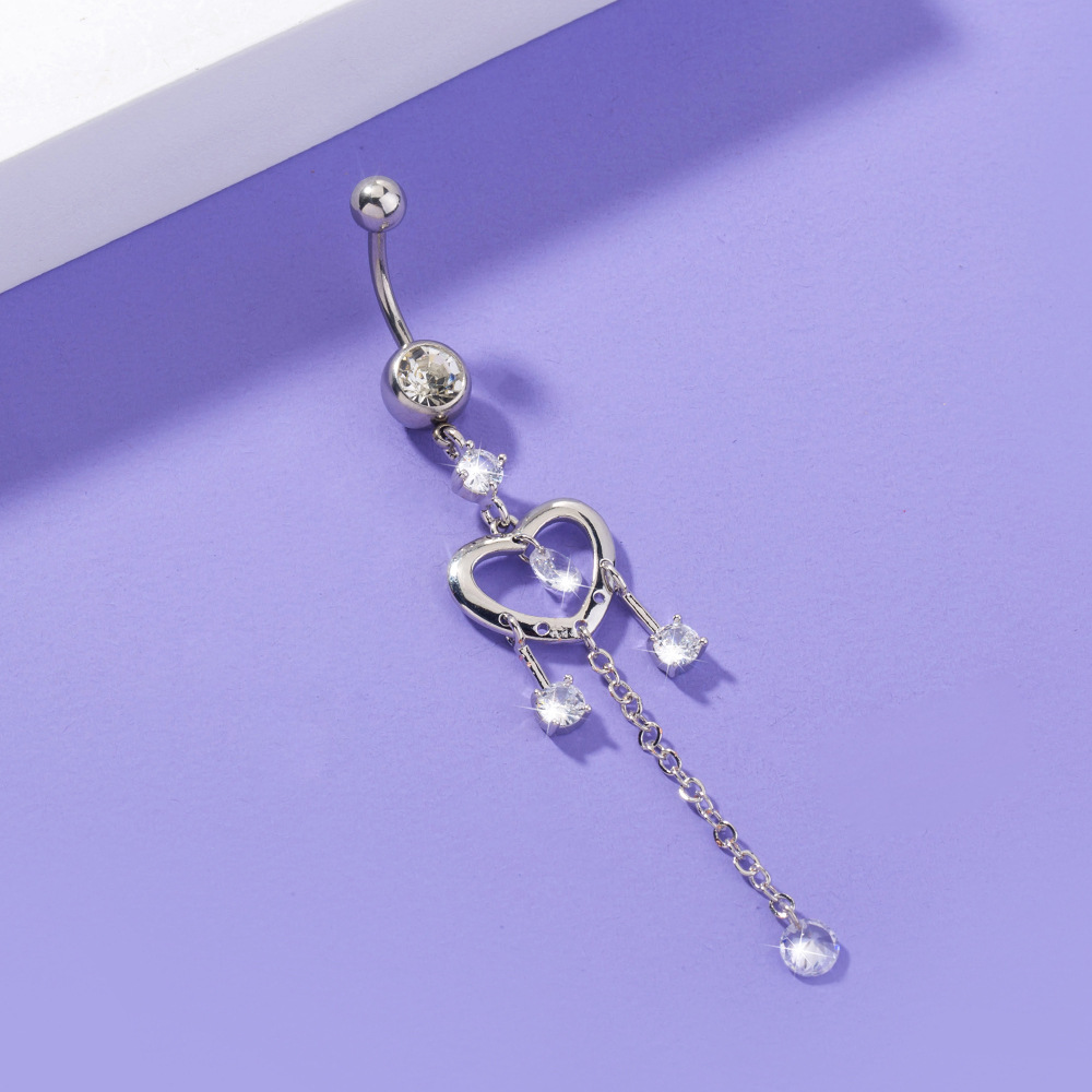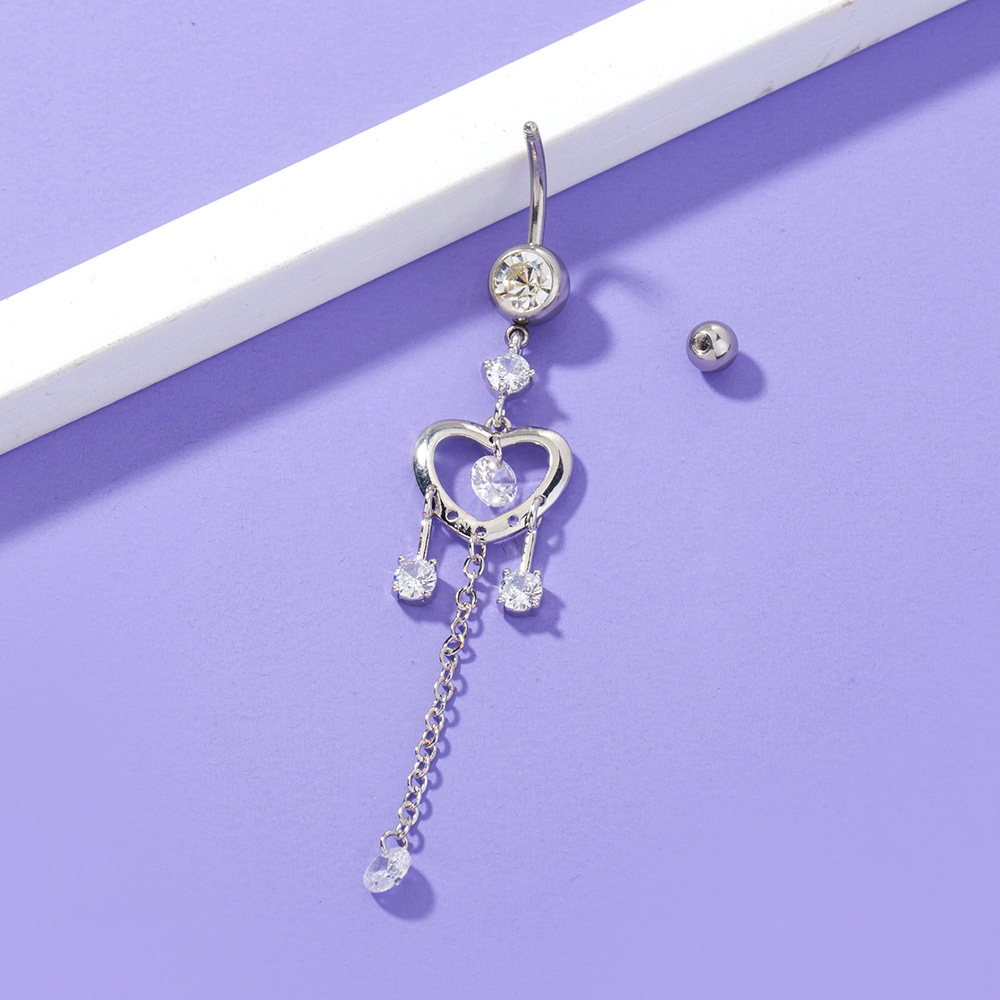 Heart-shaped Chain Zircon Belly Button Ring