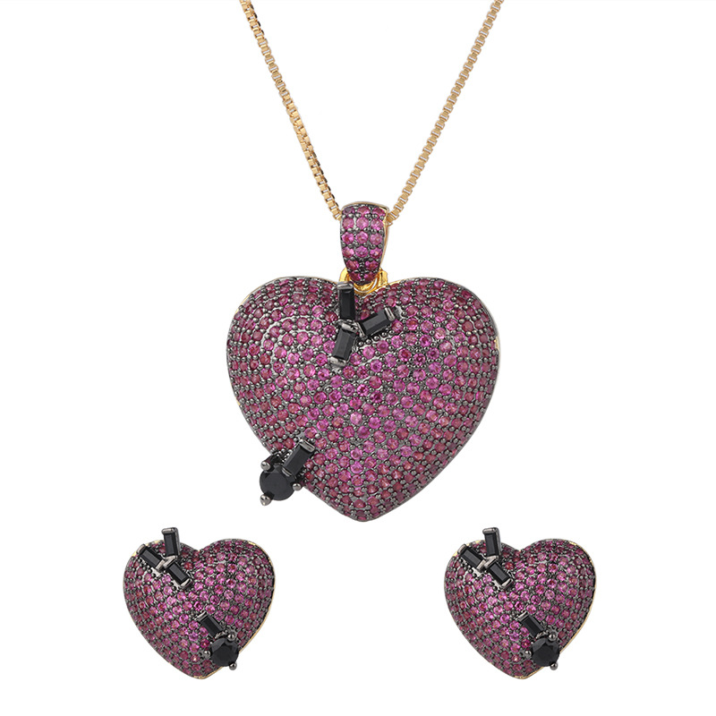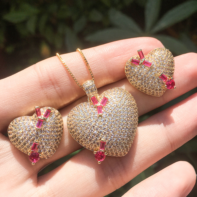 Product name: heart-shaped pendant set with micro-studded earrings