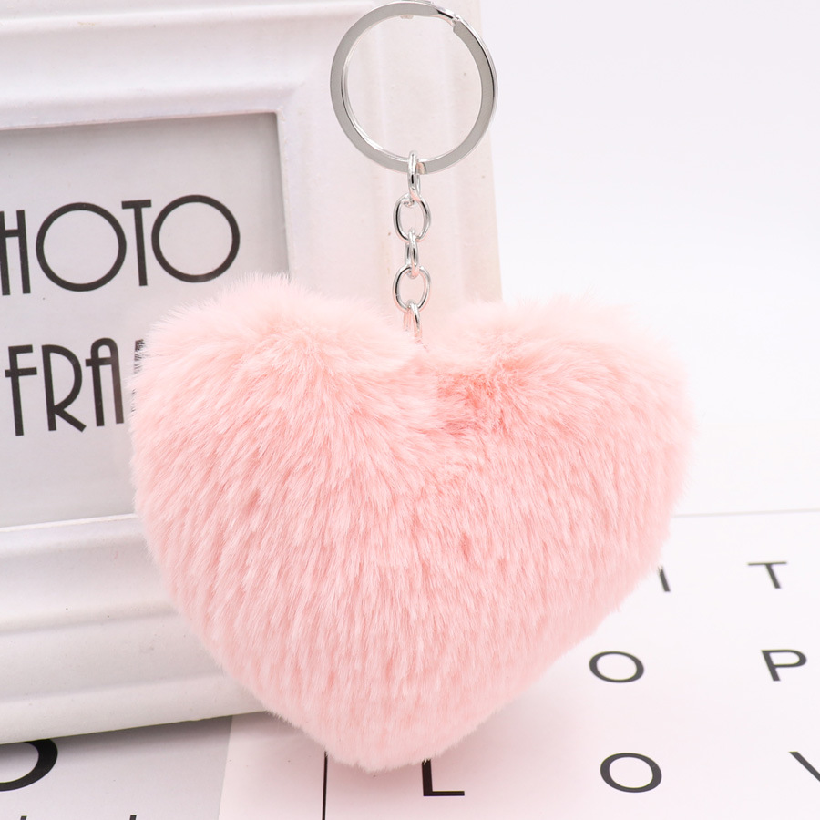 Heart-shaped Fur Ball Keychain Rex Rabbit Plush Car Pendant