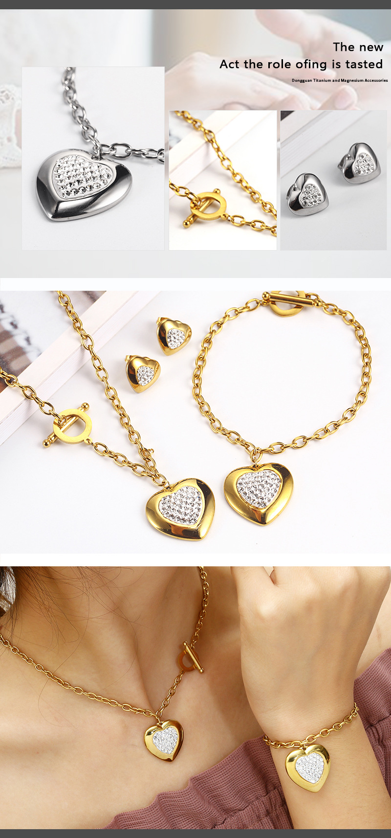 Product: Jewelry SetMaterial: titanium steelWork: manual polishingYan: steel color, goldSize: Necklace: 45CMBracelet: 20CM