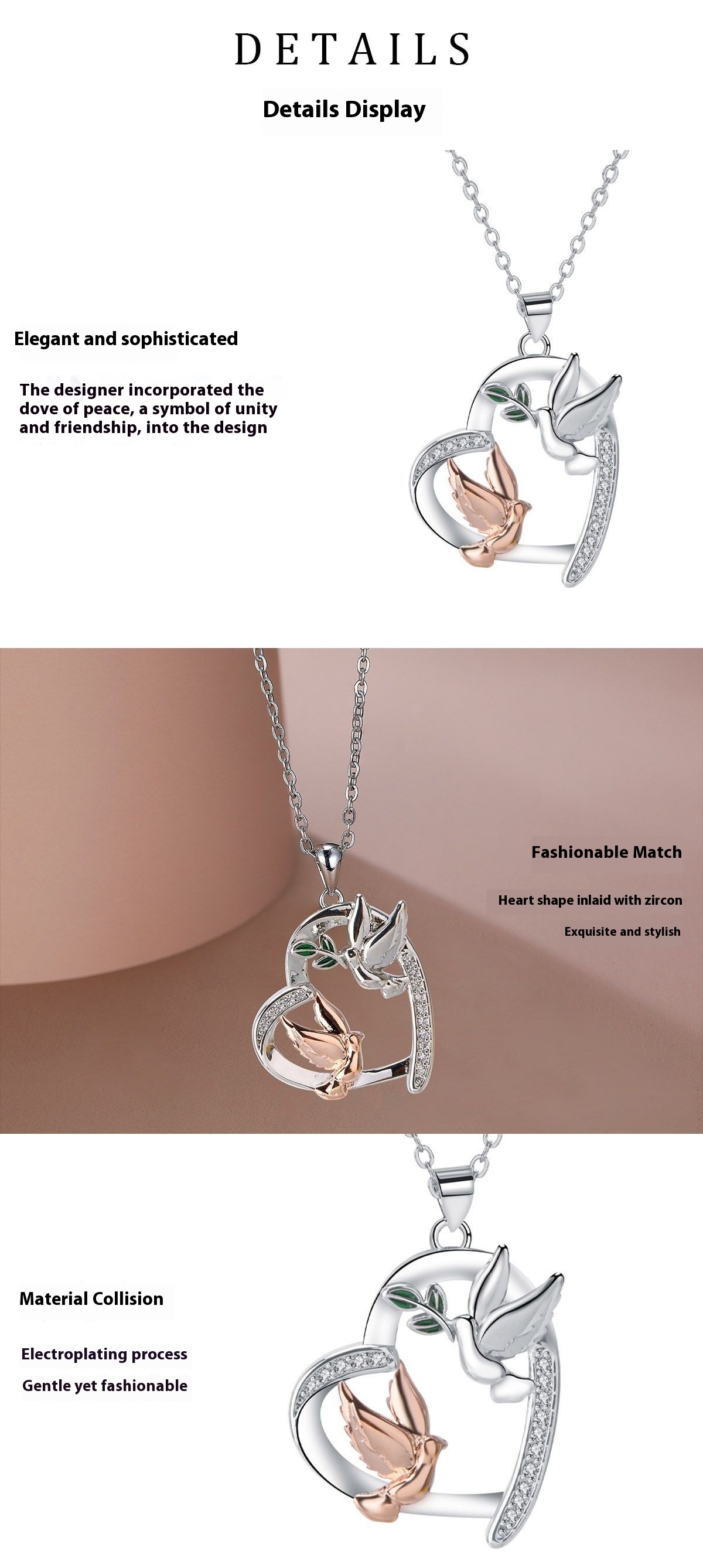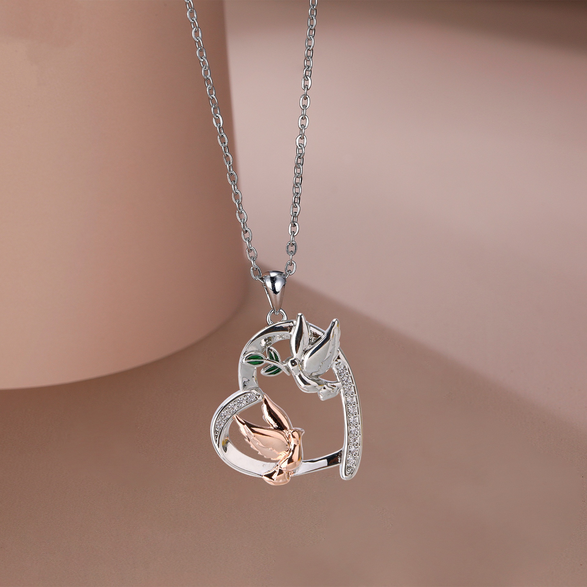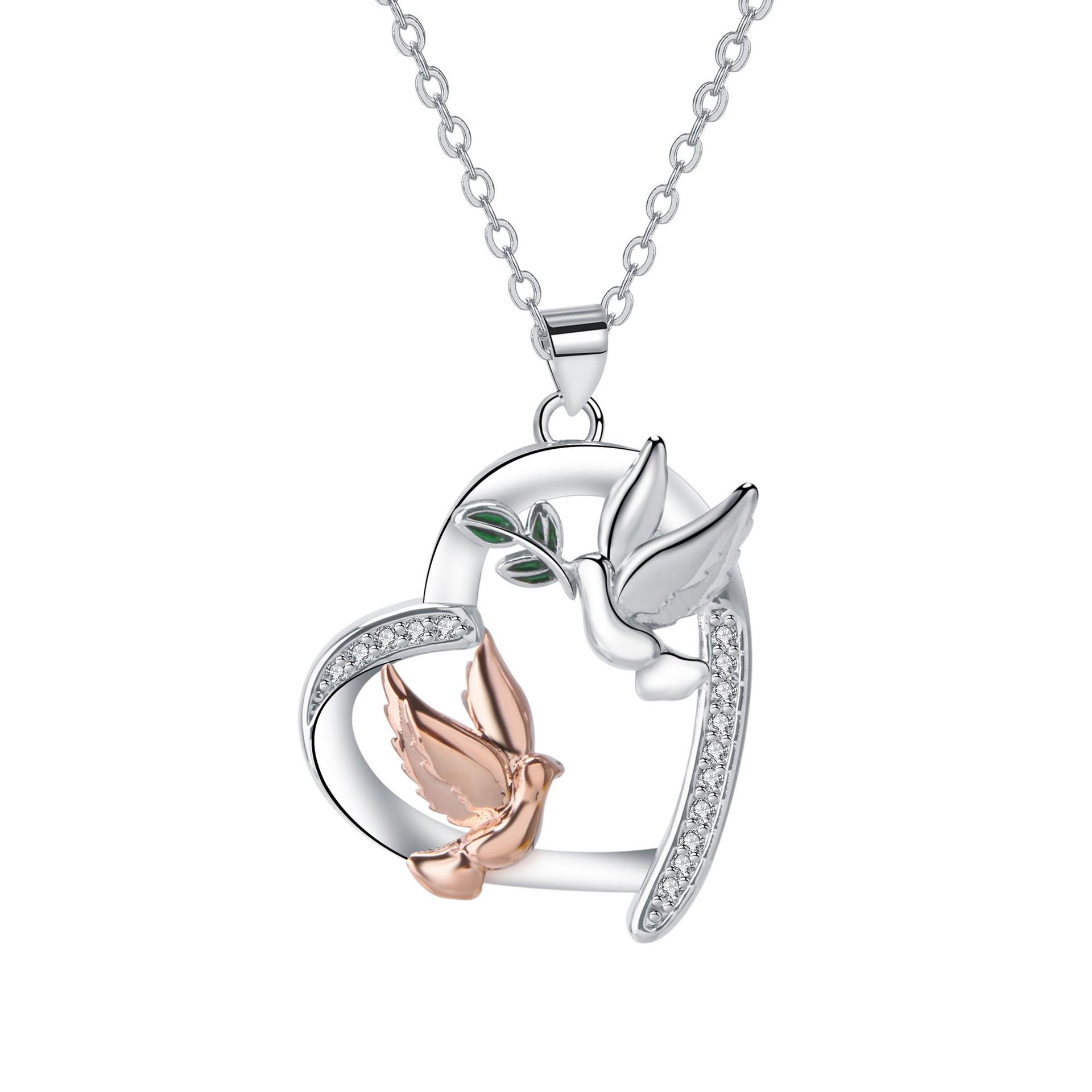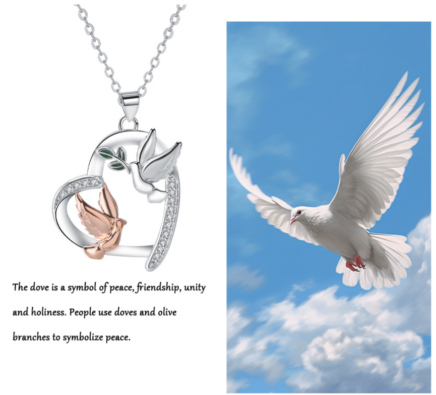 Heart-shaped White Phoenix Peace Dove Necklace