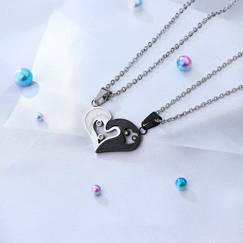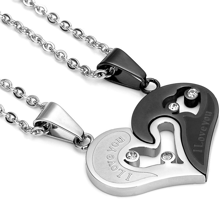Color: silver black panel Love necklace two-piece set