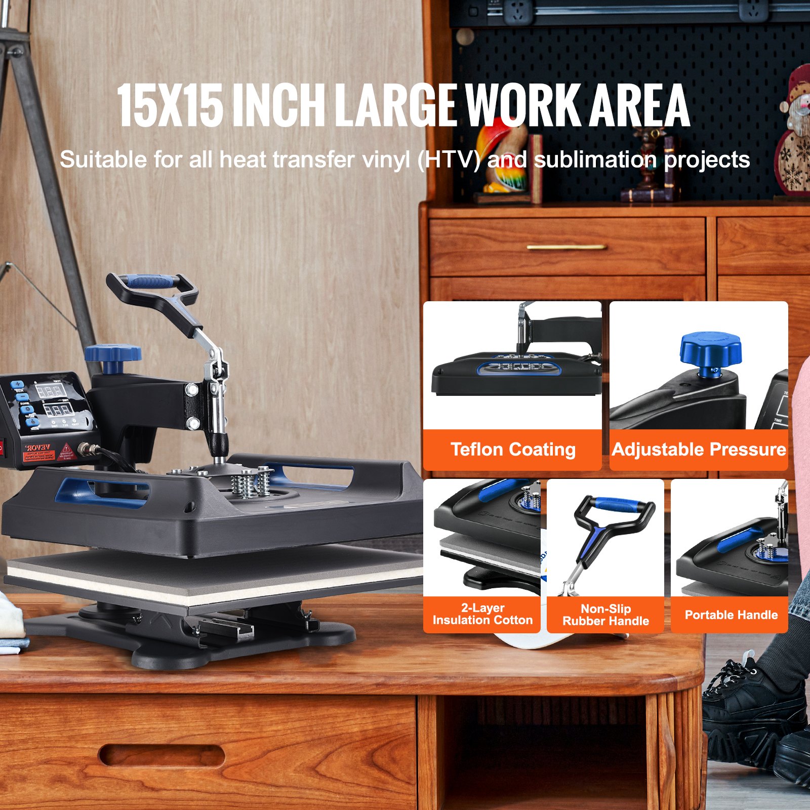 Heat Press 15x15, Upgraded Heat Press Machine 5 In 1, Anti-Scald, Fast-Heating, Swing Away Digital Control Multifunction Heat Press For Sublimation Combo For T-Shirt Hat Cap Mug Plate