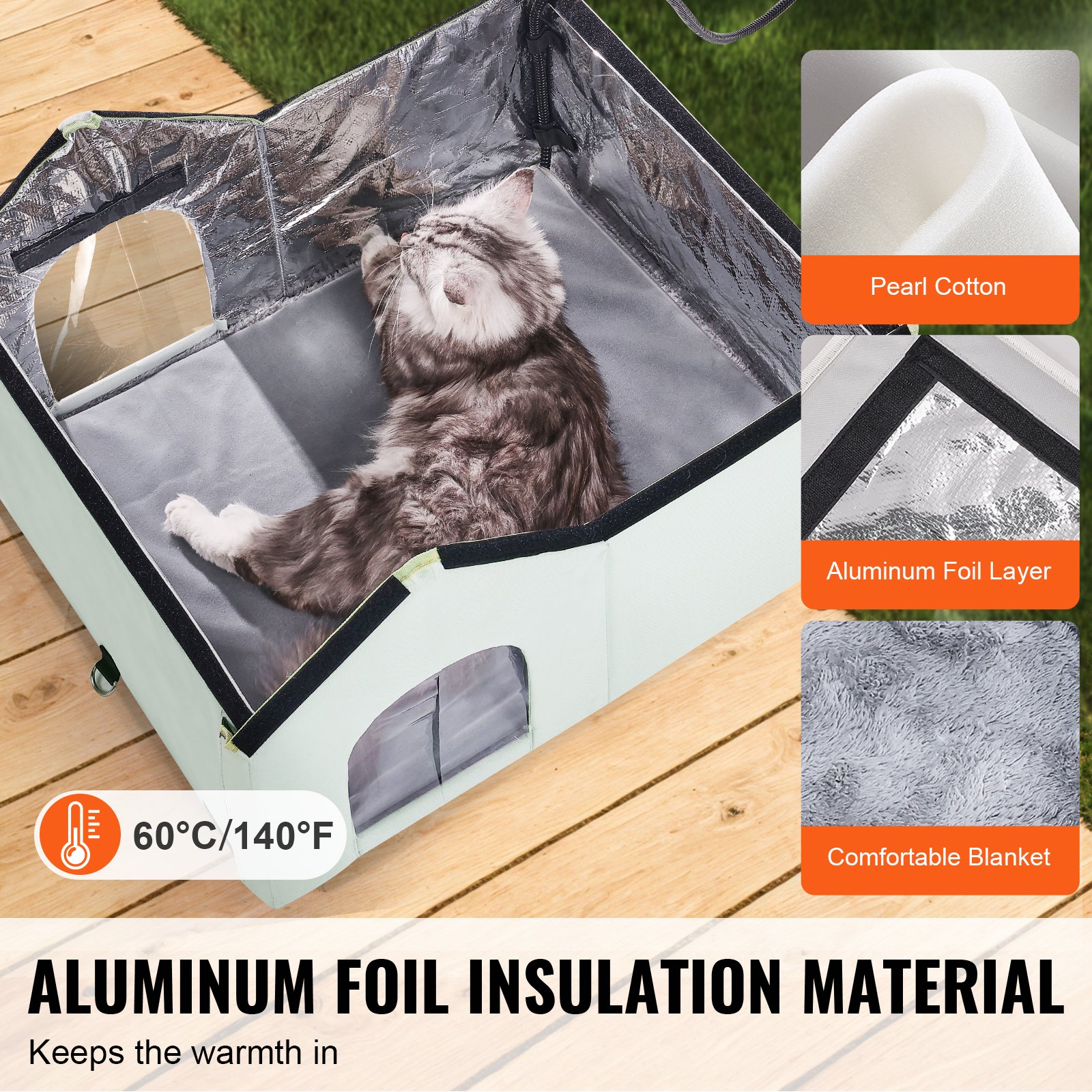 Heated Cat House Foldable Kitty Shelter With Heated Pad Green Large