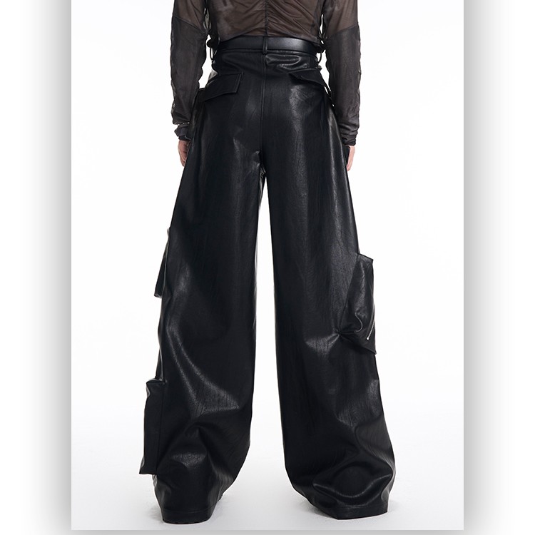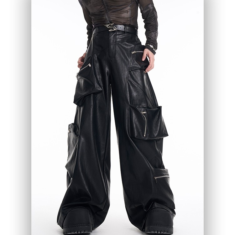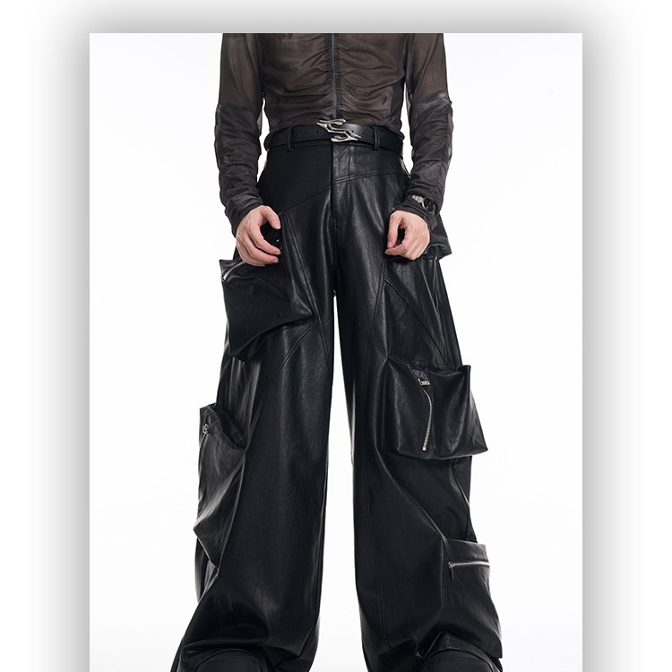 Heavy Black PU Leather Pants Men's Spring