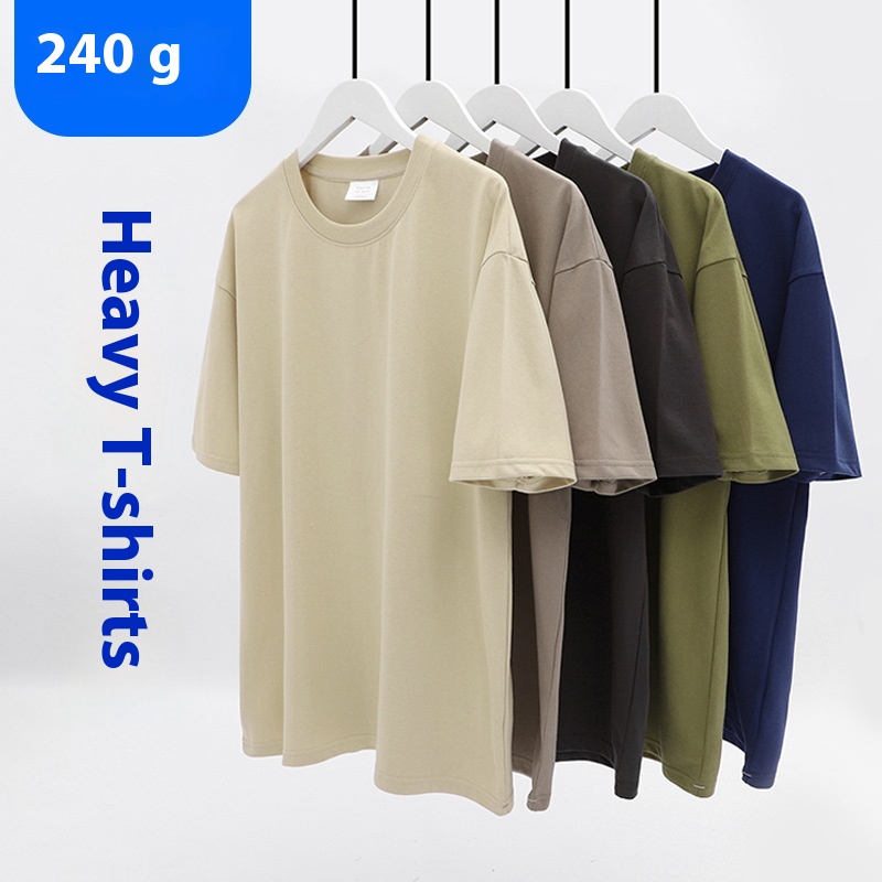 Heavy Cotton T-shirt Plus Size Round Neck Bottoming Shirt Thickened 240g
