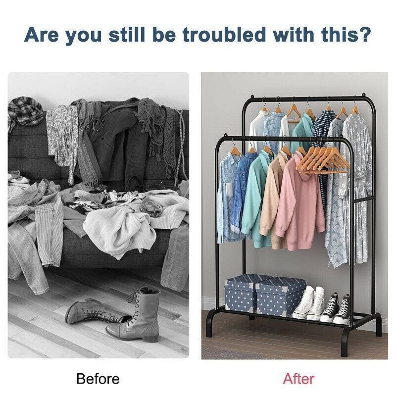 High-Quality Materials: Made of a highly resistant metal with premium heavy gauge chromium plating to enhance protection against rust & corrosion. The garment rack will offer you long-term and stable organization.