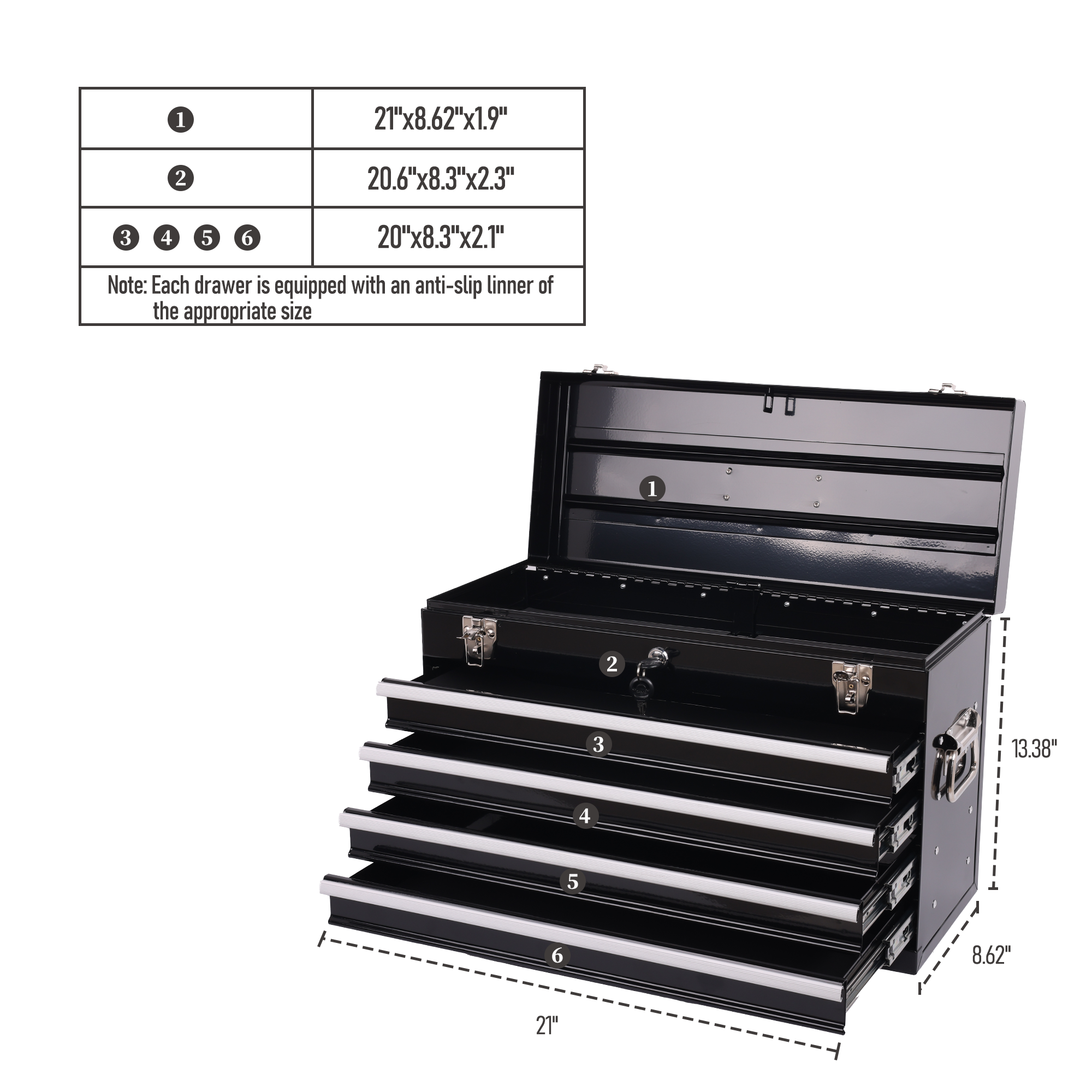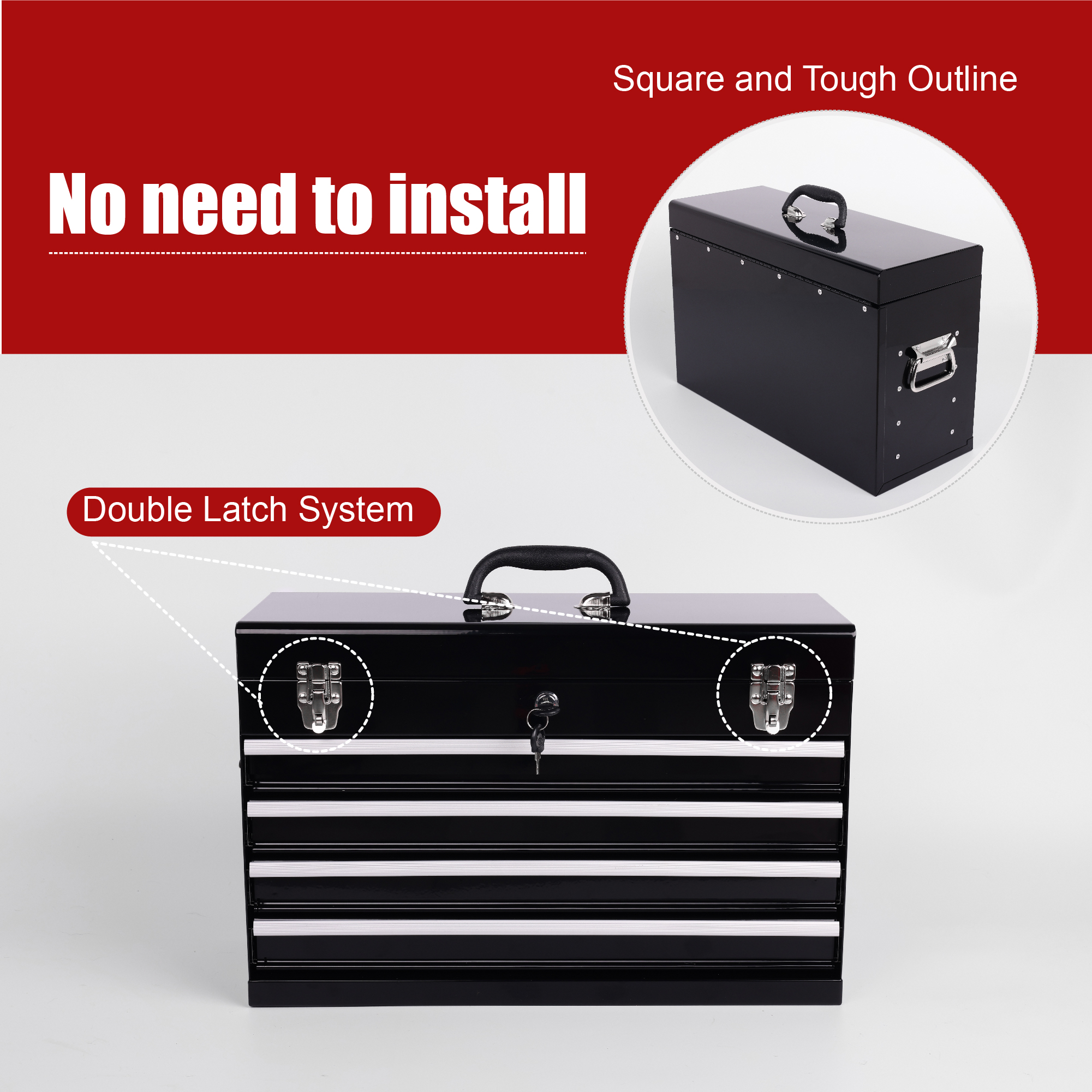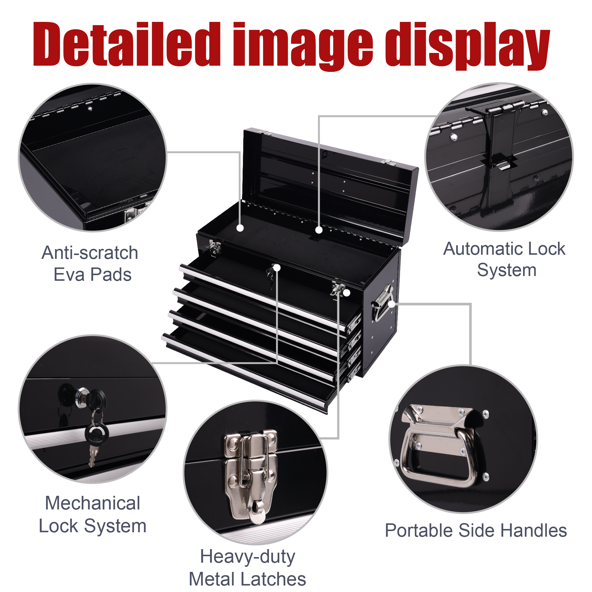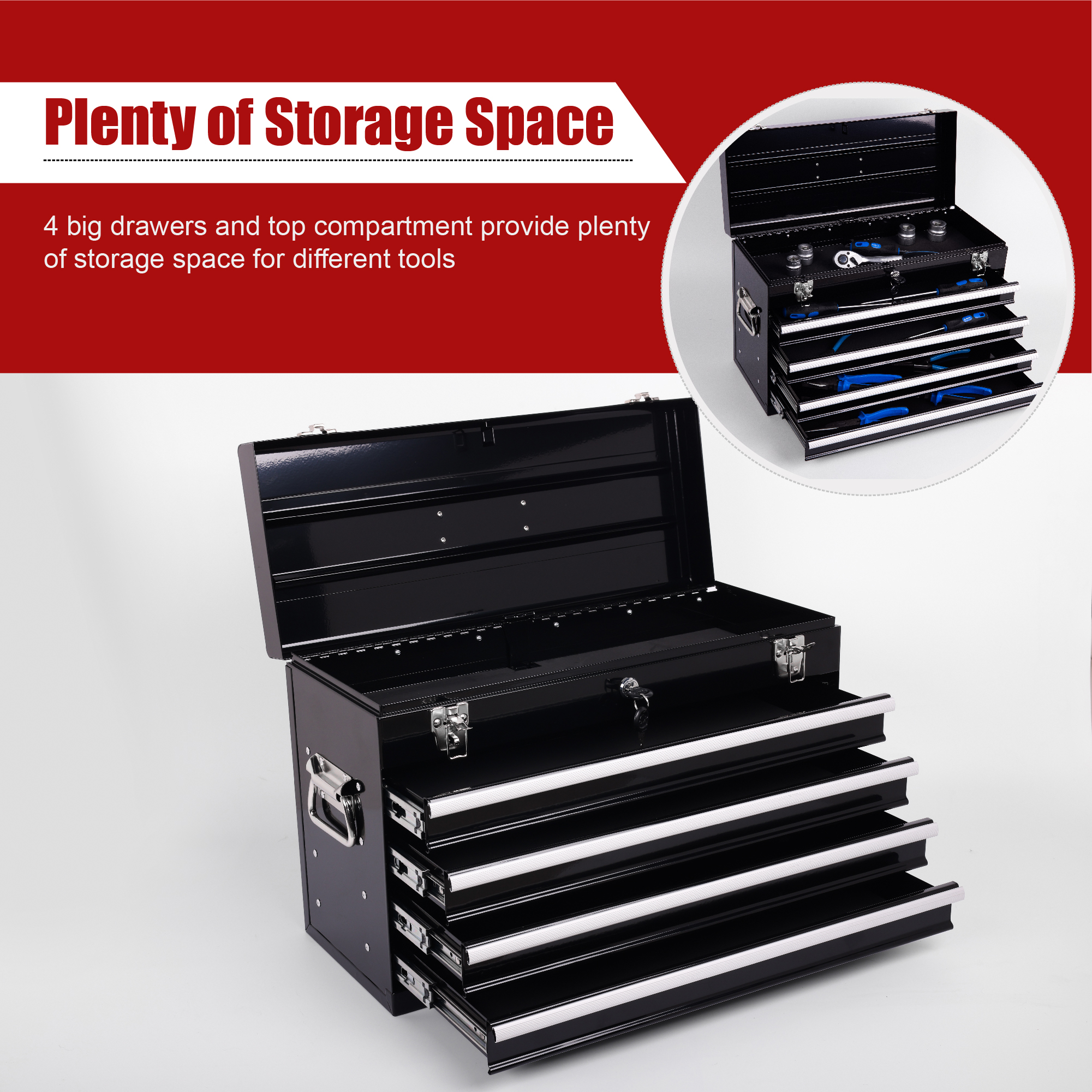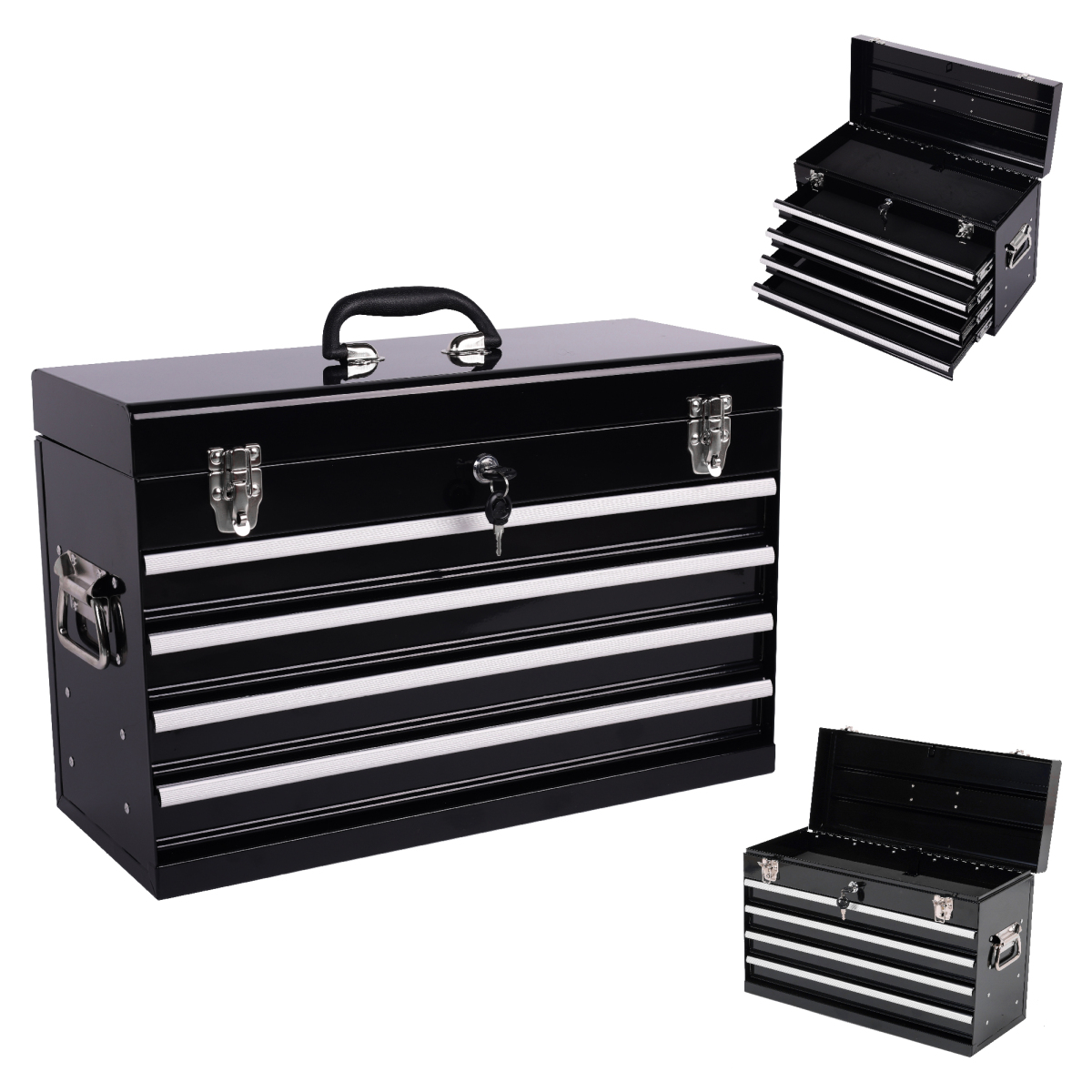 Product Name:Heavy Duty Metal Tool Box, 21-inch, Portable Metal Tool Box with 4 Drawers, Small Tool Chest with EVA Liners, Ball Bearing Slide Drawers Locking & Powder Coated Finish, Multi-Function Tool Organizer