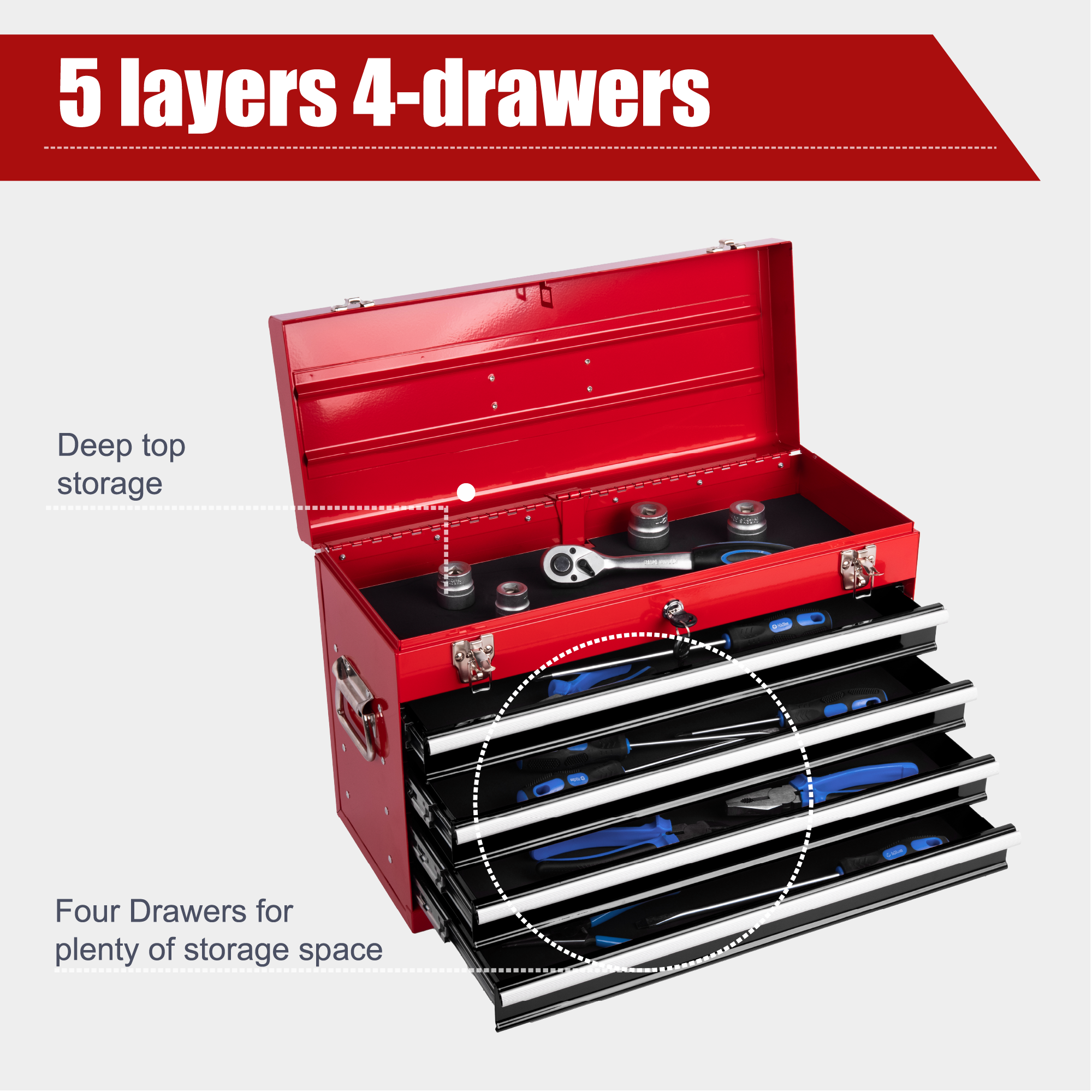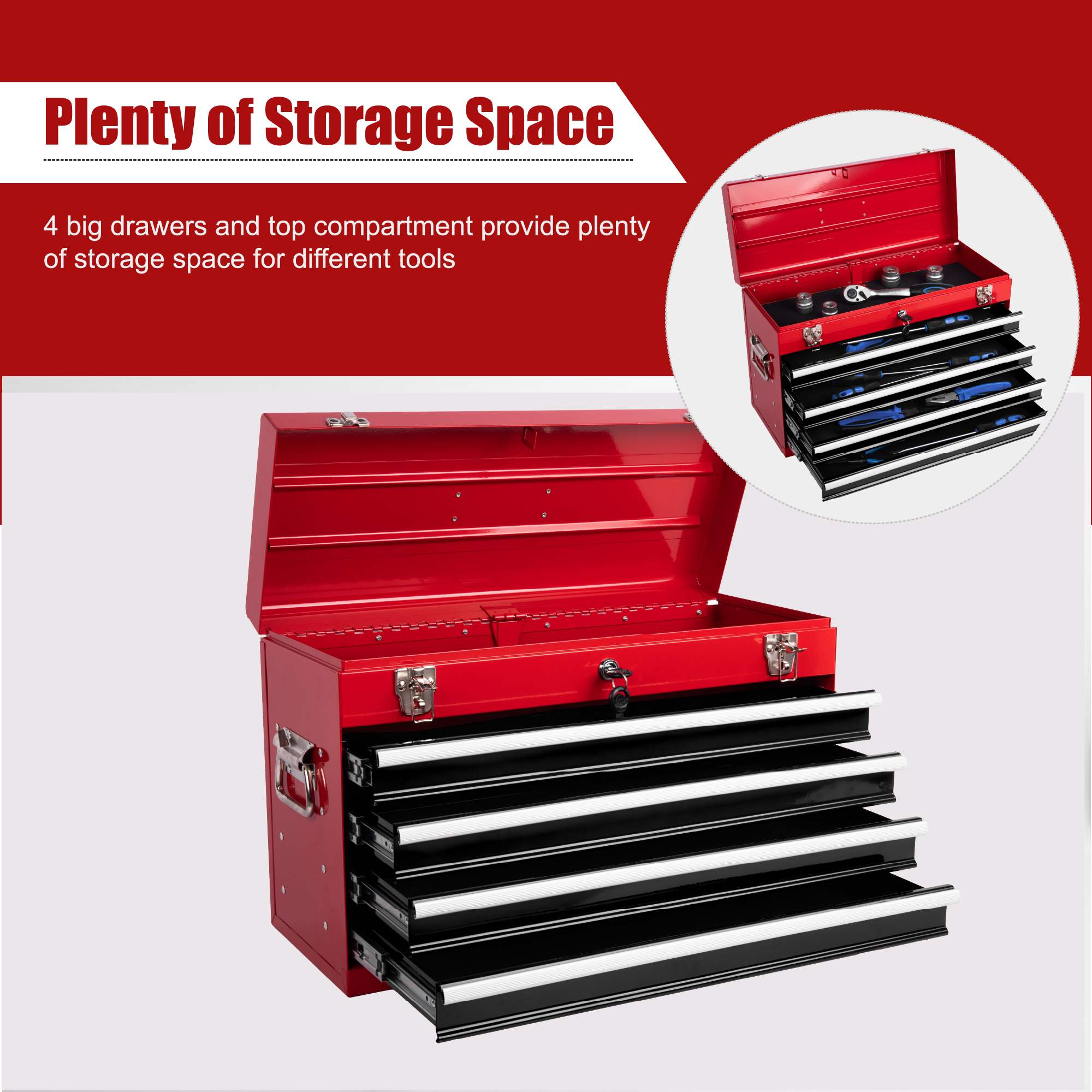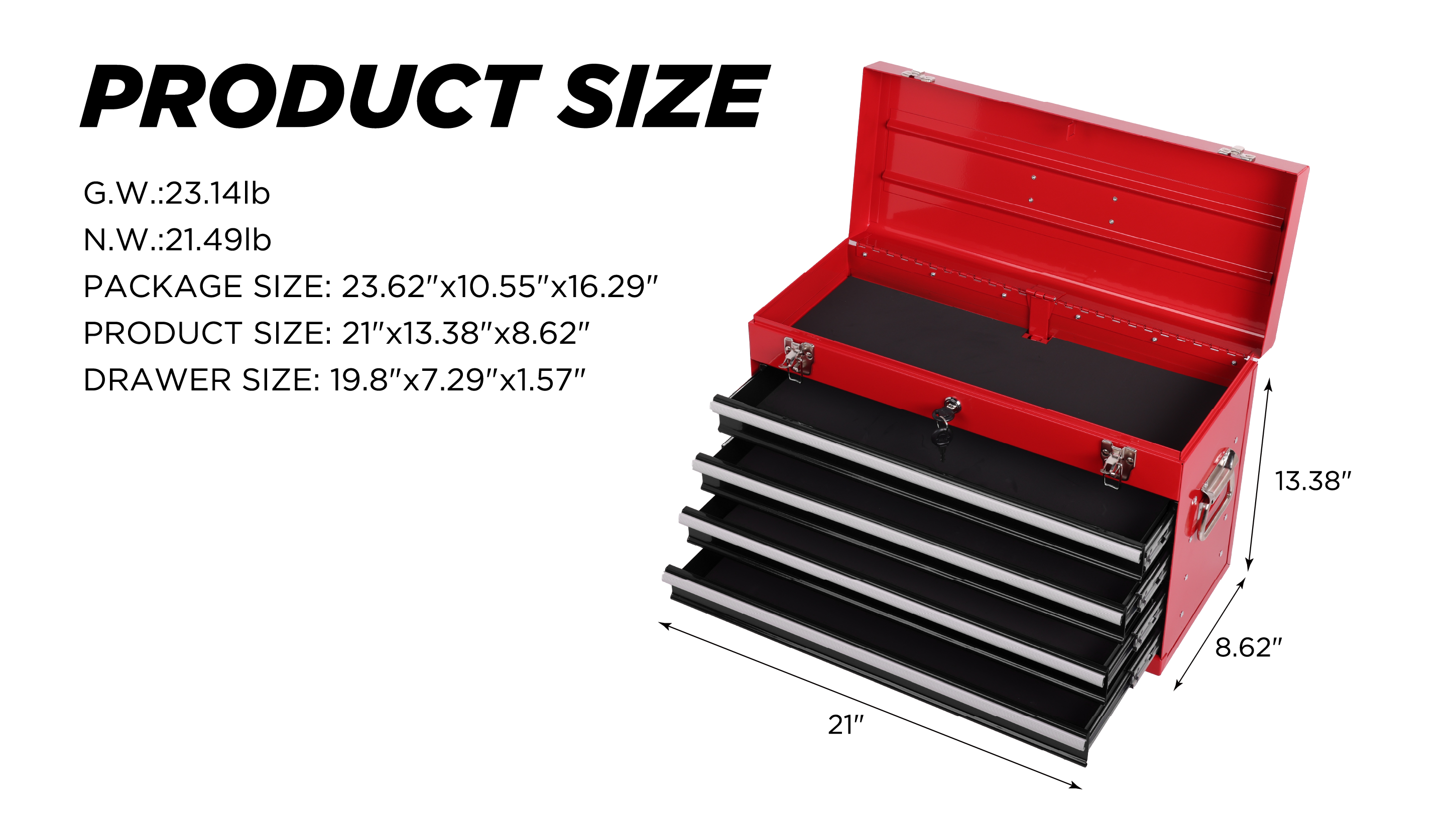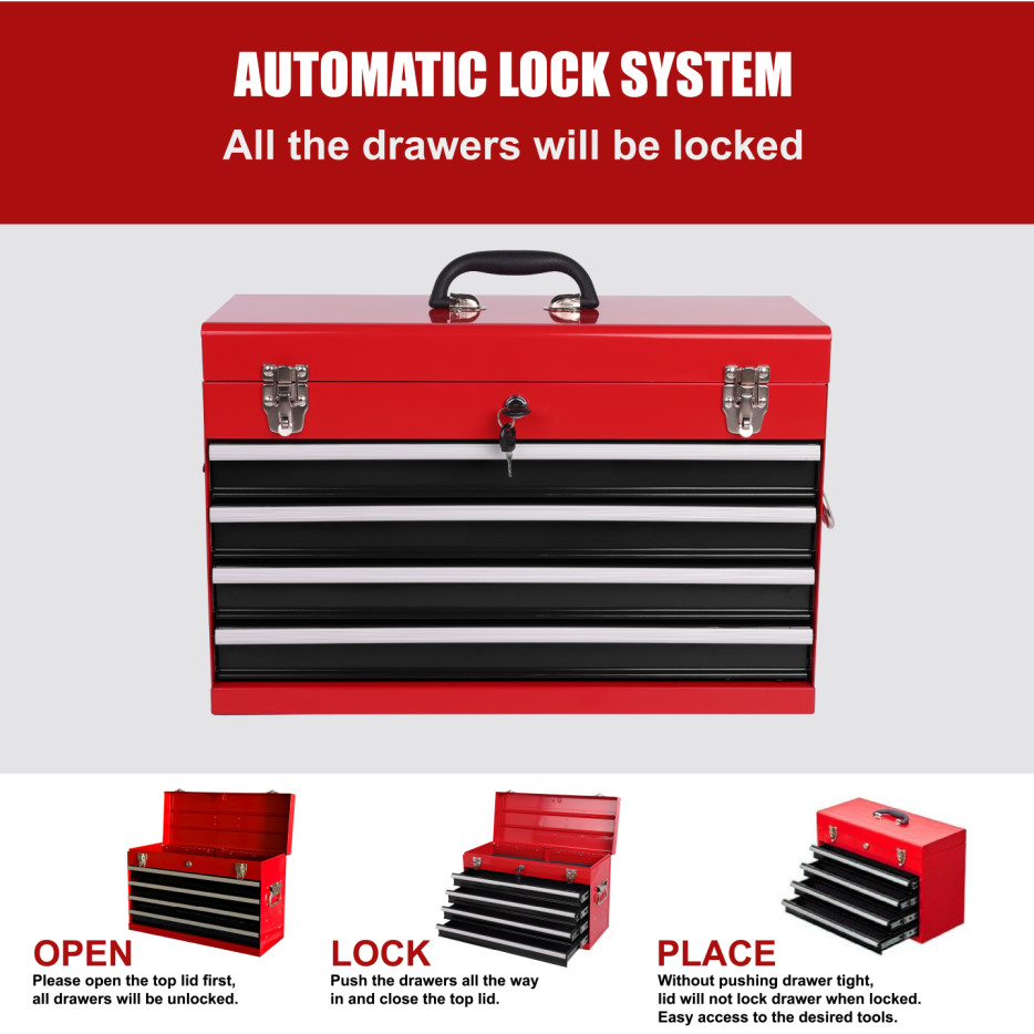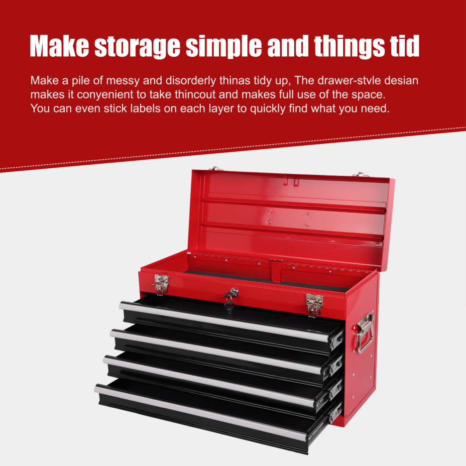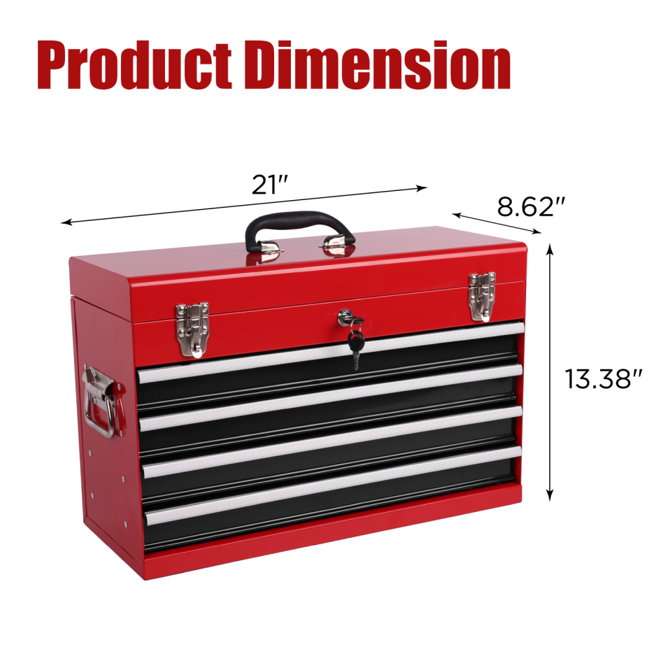 Product Name:Heavy Duty Metal Tool Box, 21-inch, Portable Metal Tool Box with 4 Drawers, Small Tool Chest with EVA Liners, Ball Bearing Slide Drawers Locking & Powder Coated Finish, Multi-Function Tool Organizer