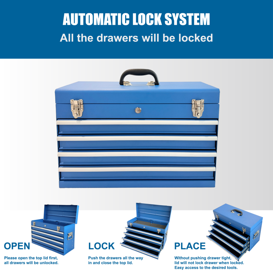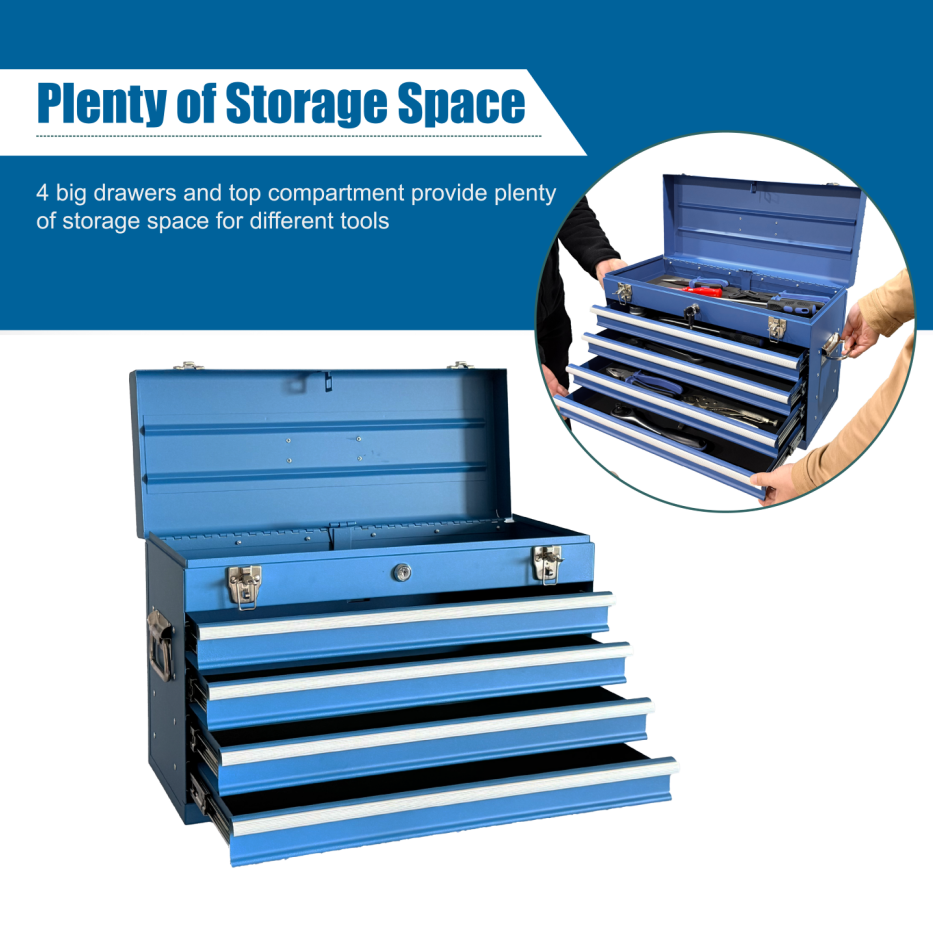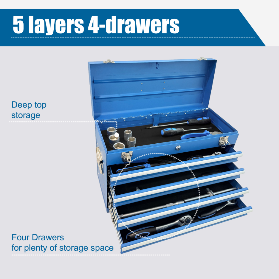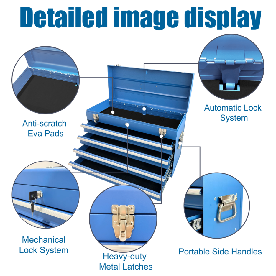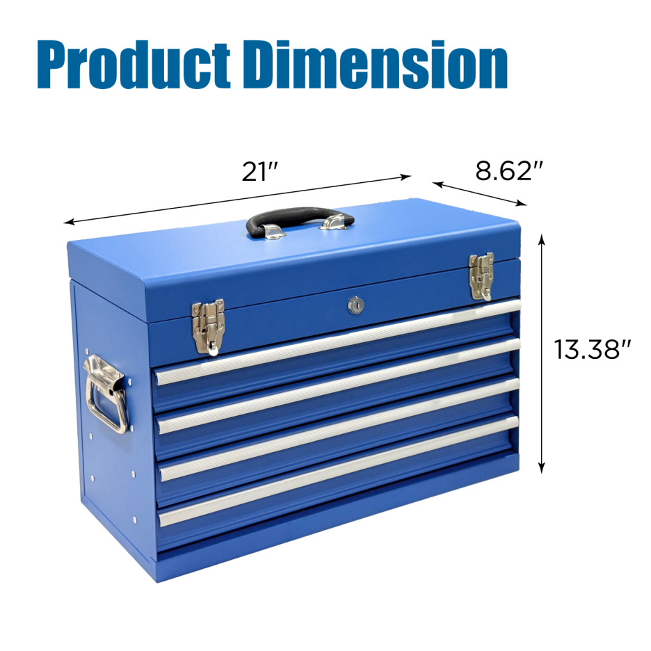 Product Name:Heavy Duty Metal Tool Box, 21-inch, Portable Metal Tool Box with 4 Drawers, Small Tool Chest with EVA Liners, Ball Bearing Slide Drawers Locking & Powder Coated Finish, Multi-Function Tool Organizer