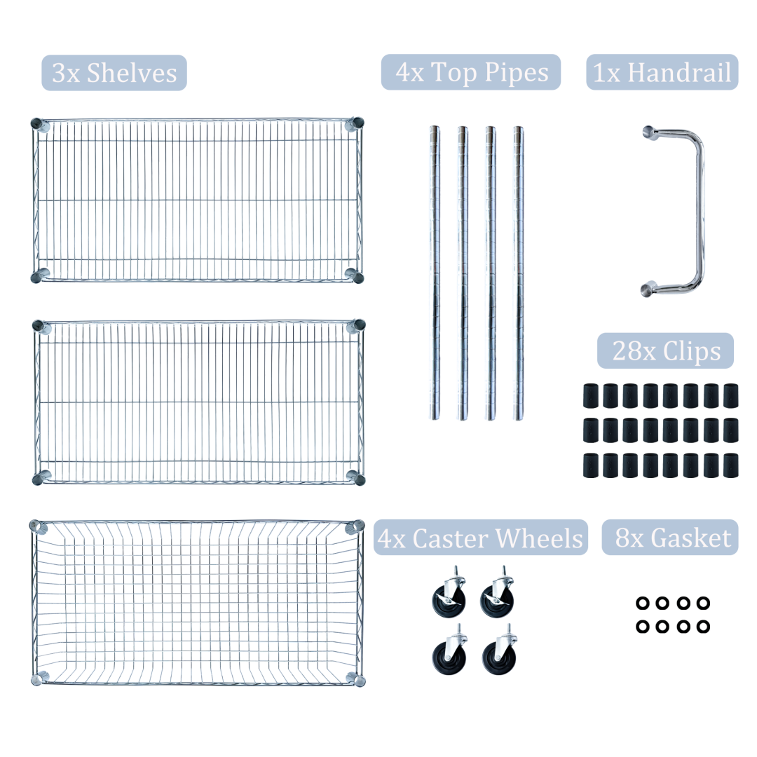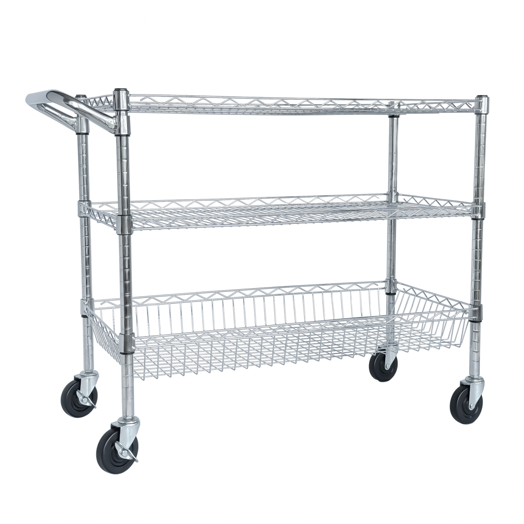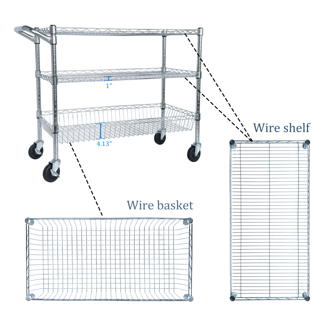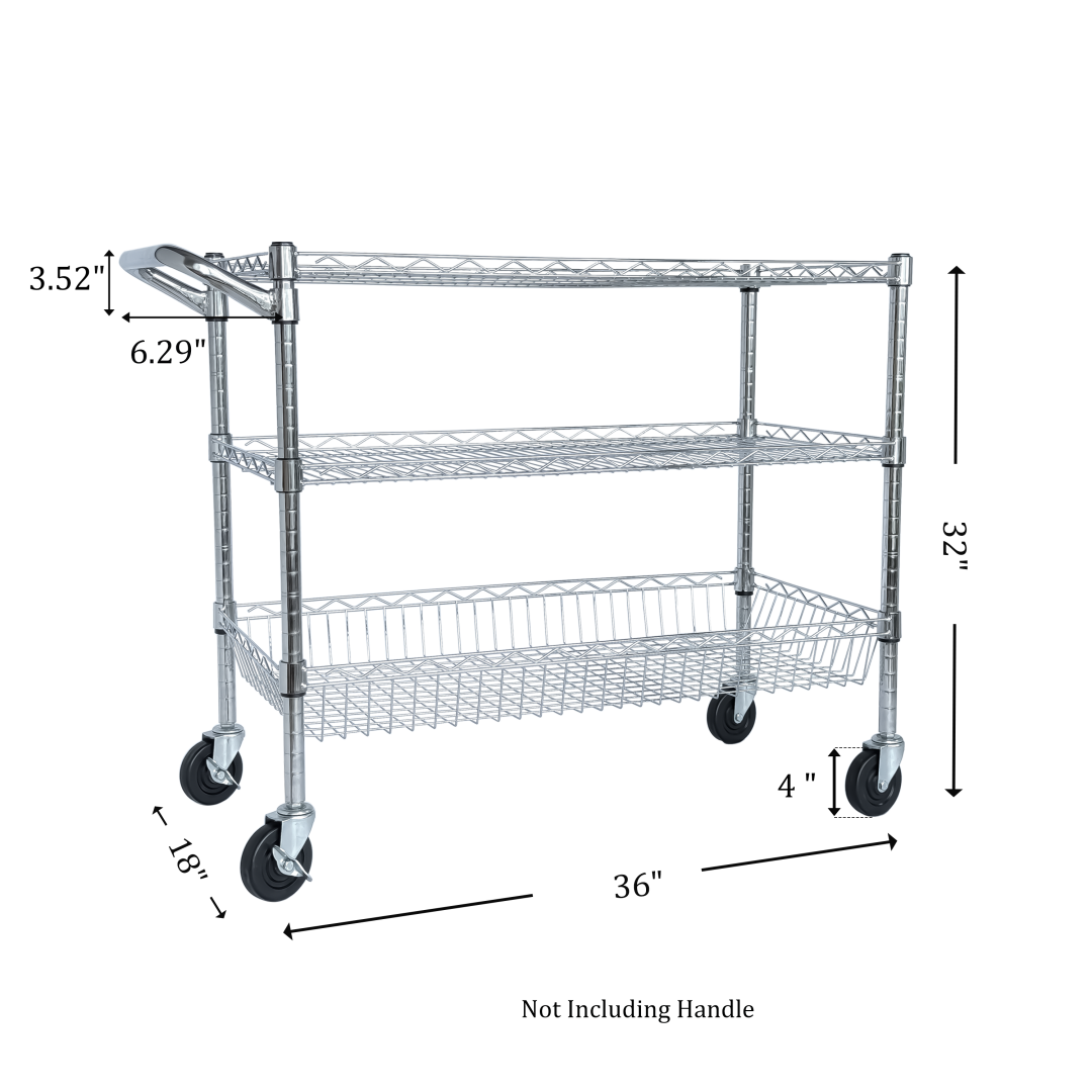 Product Name:Heavy Duty Rolling Utility Cart,3 Tier Rolling Carts with Wheels,with Handle Bar & Shelf Liners,36"x18"x32"Storage Cart for Kitchen,Restaurant,Plant Display,Chrome