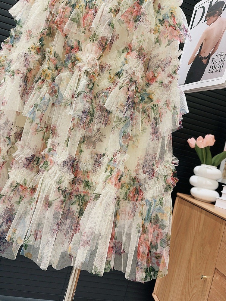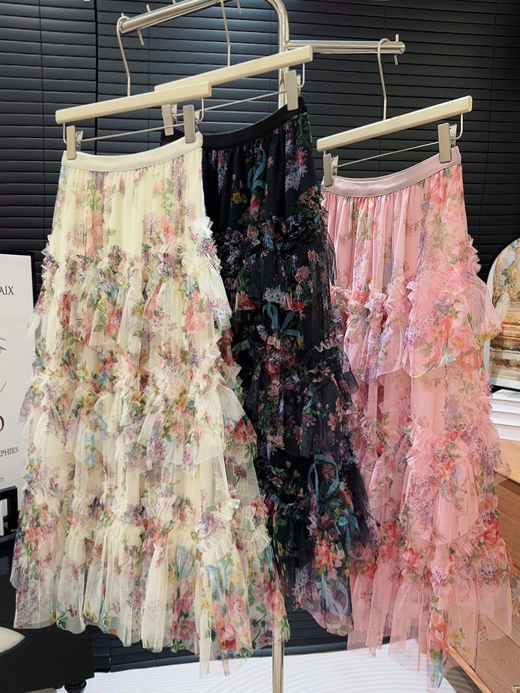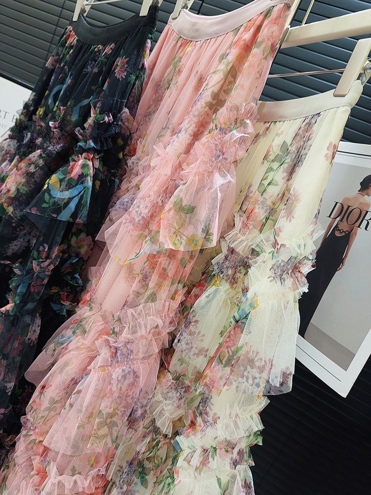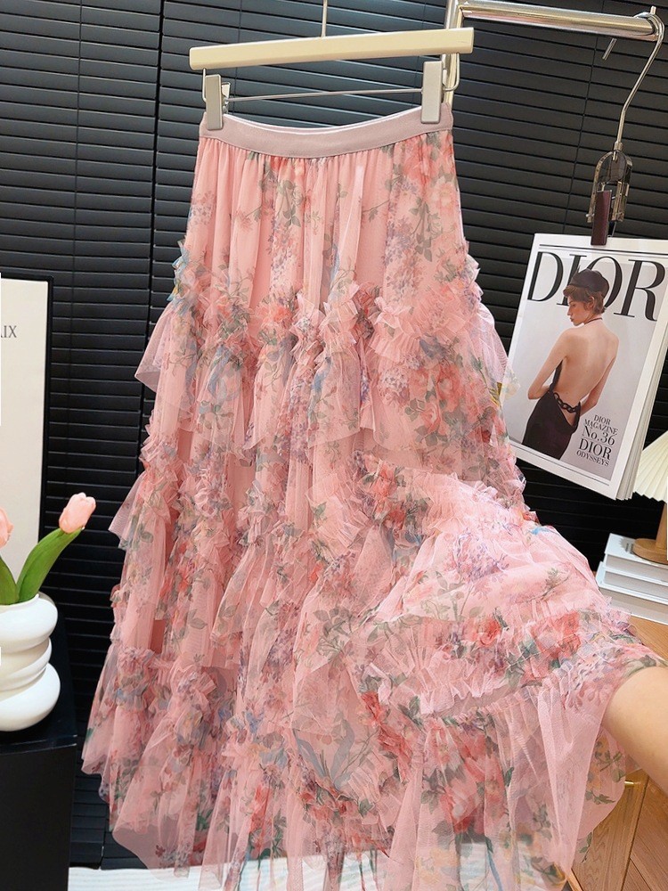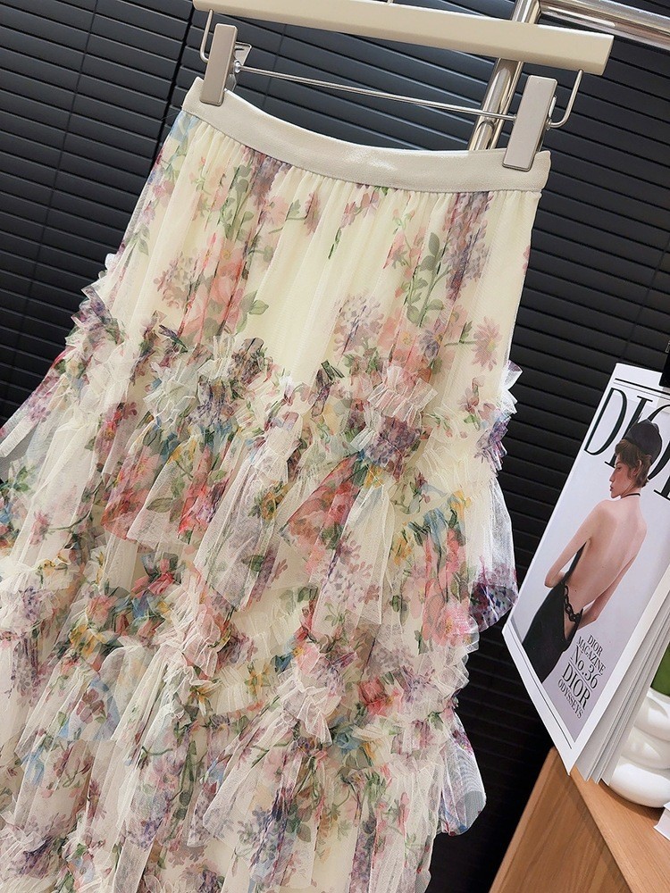 Heavy-duty Spliced Printed Mesh Skirt For Women