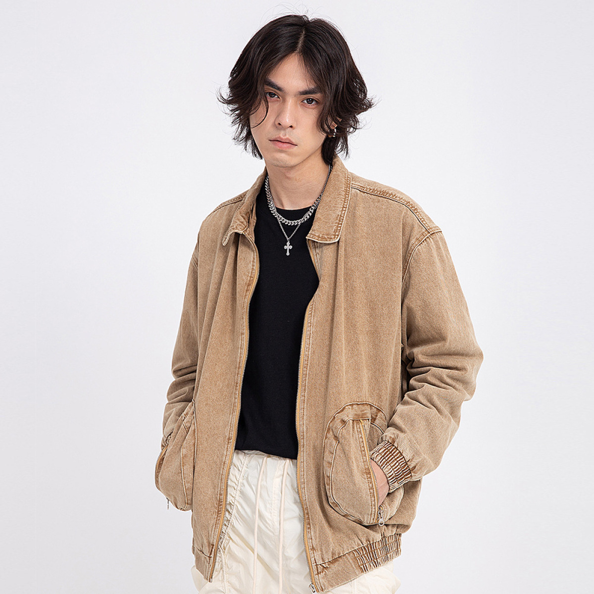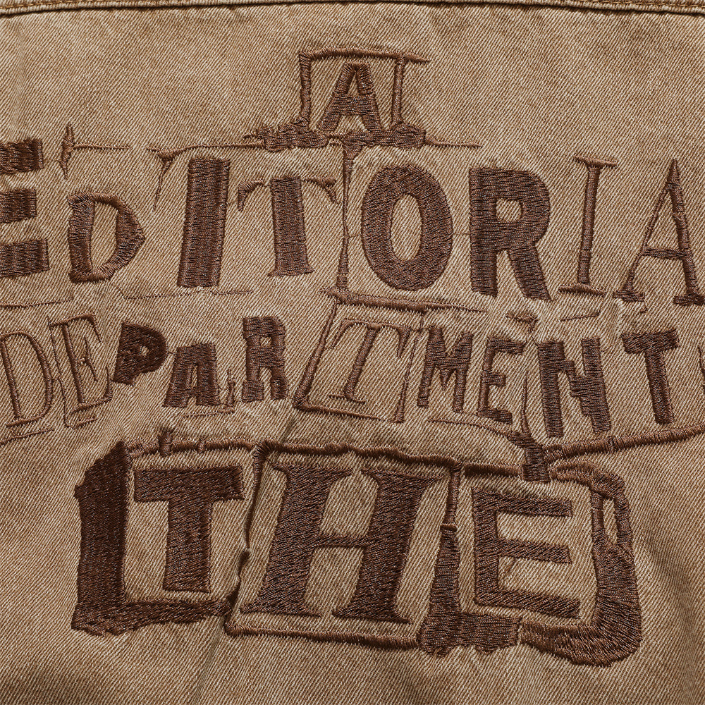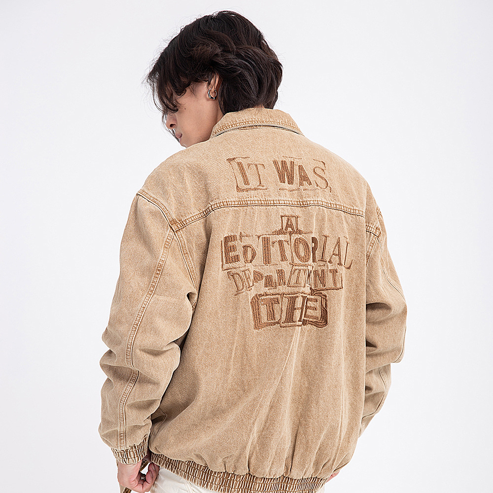Heavy-duty Washed Distressed Back Letter Embroidered Denim Jacket