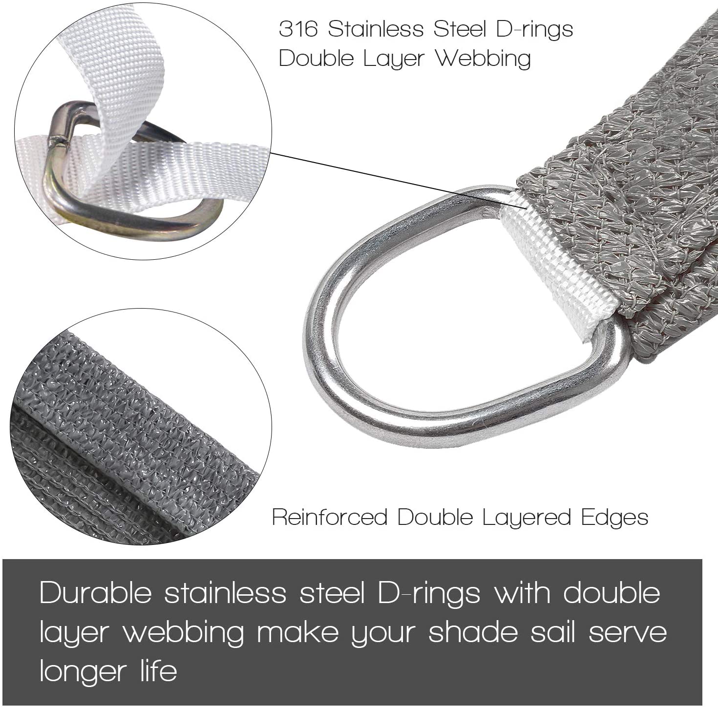 The edge of the shade sail is curved, and the actual use area is about 10% less than the measured area. Please purchase with cautious,thank you.