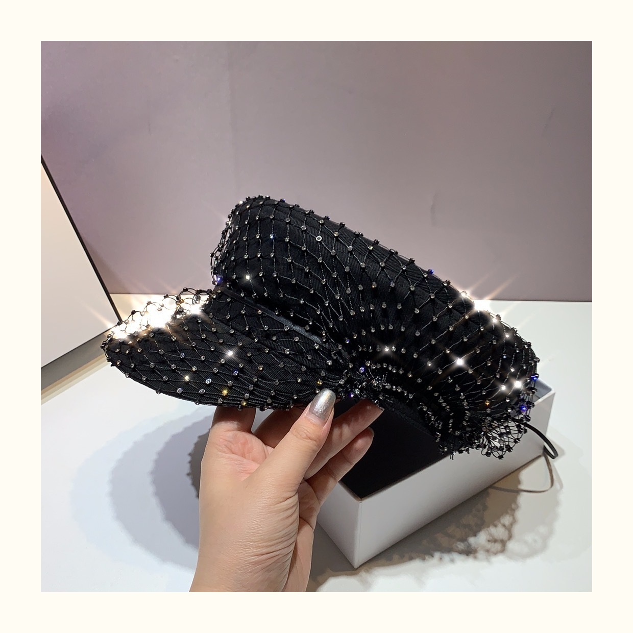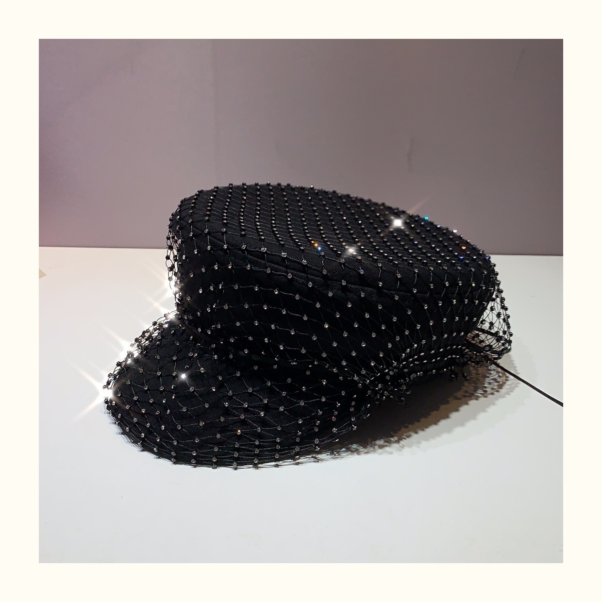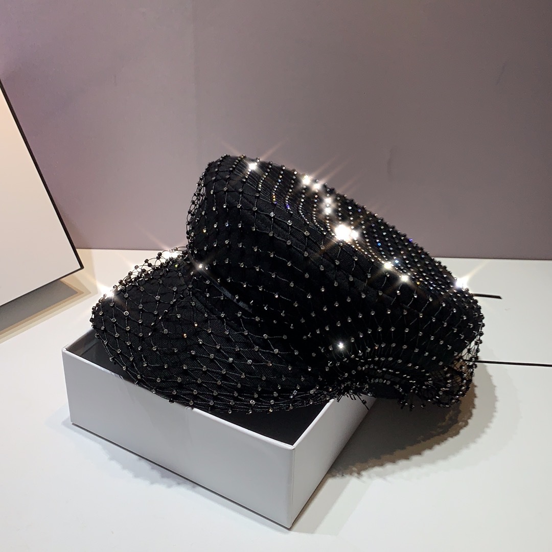 Heavy Embroidery Hot Drilling Mesh Black Navy Hat