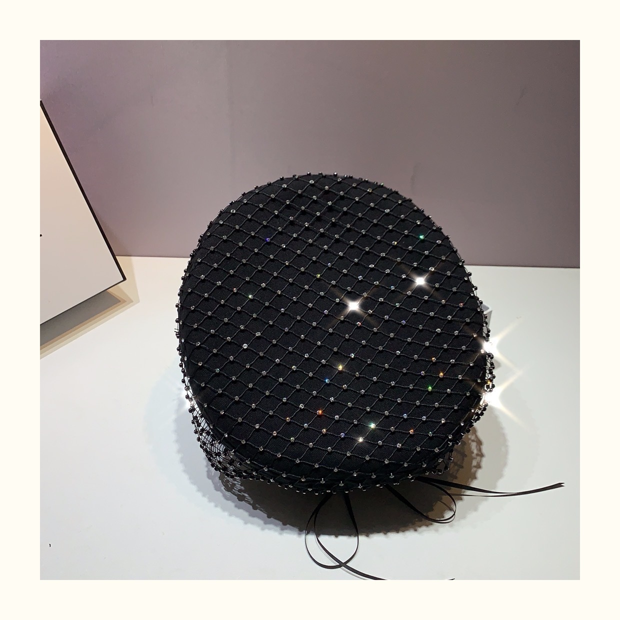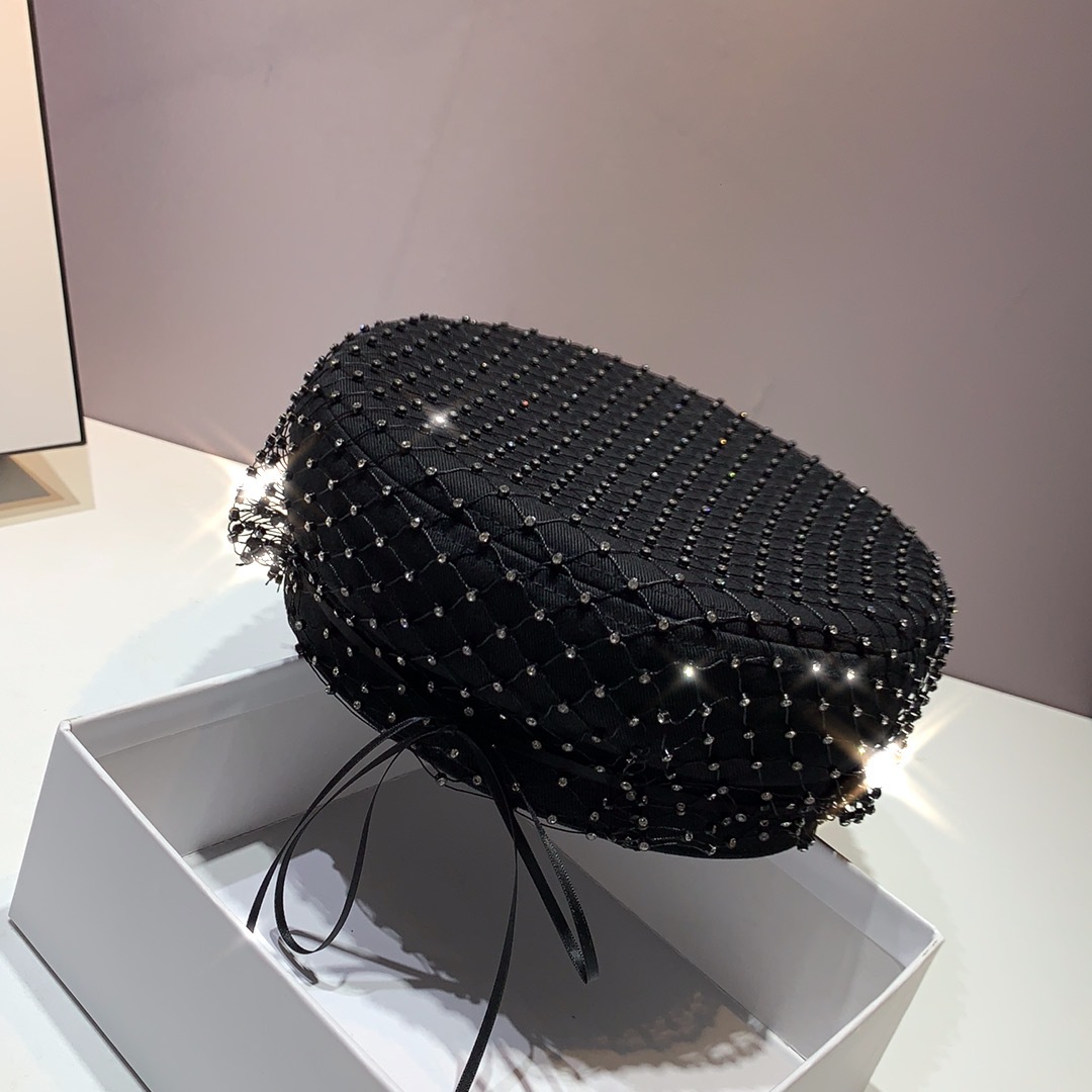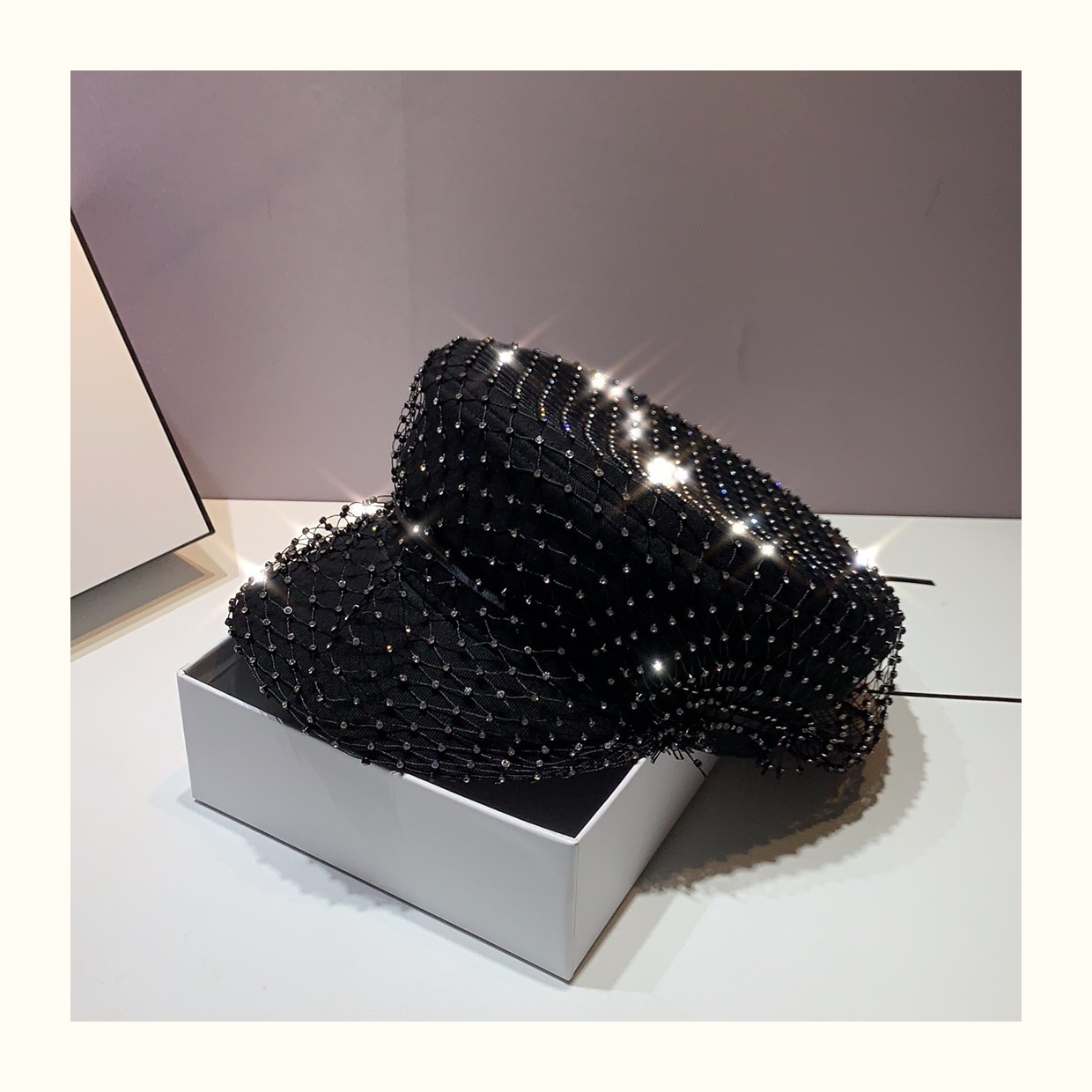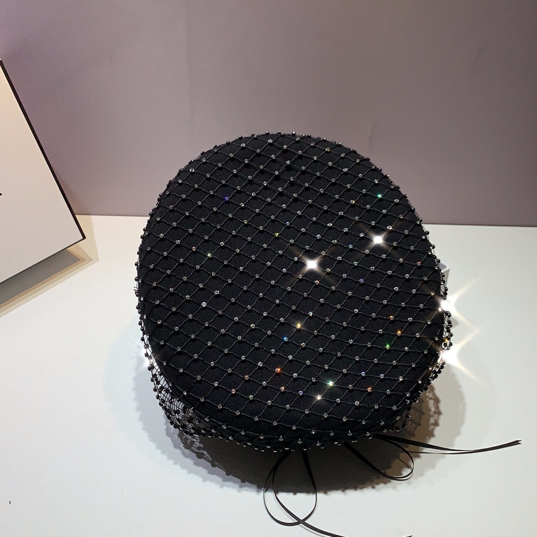 Heavy Embroidery Hot Drilling Mesh Black Navy Hat