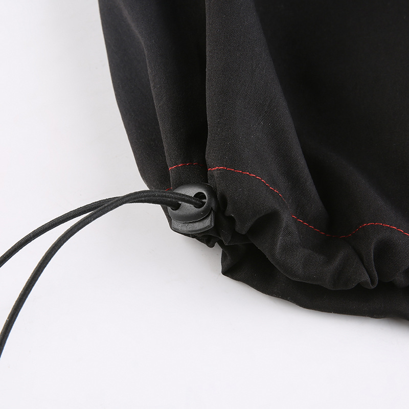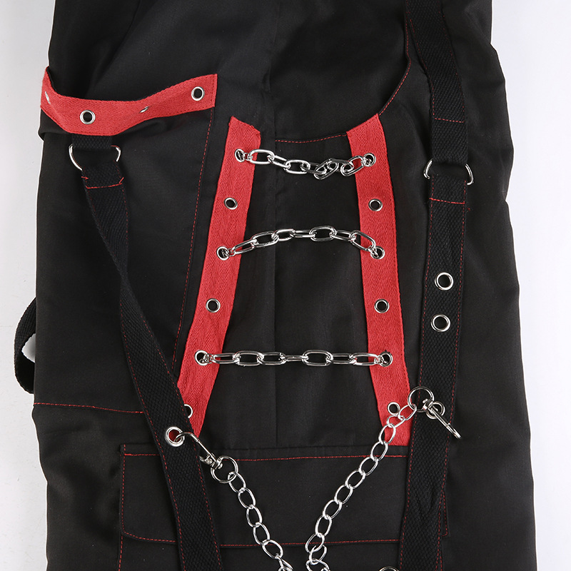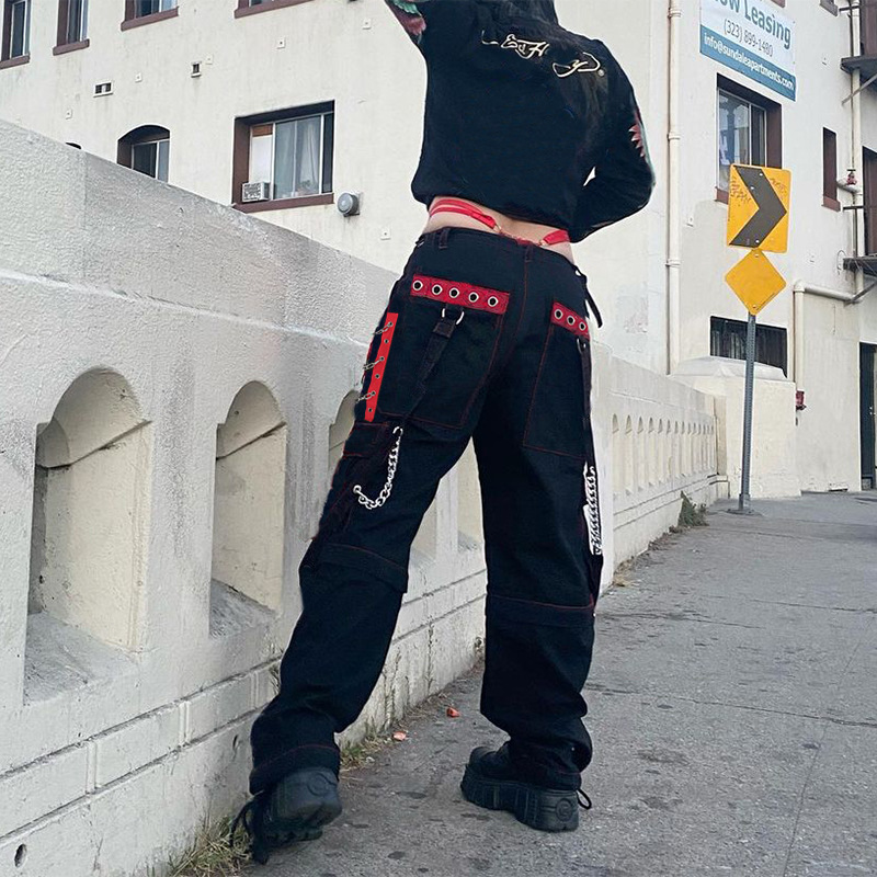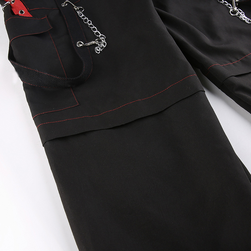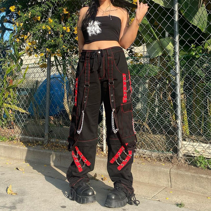Heavy Industry Dark Contrast Color Ribbon Metal Decorative Chain Stitching Ankle Banded Pants Female