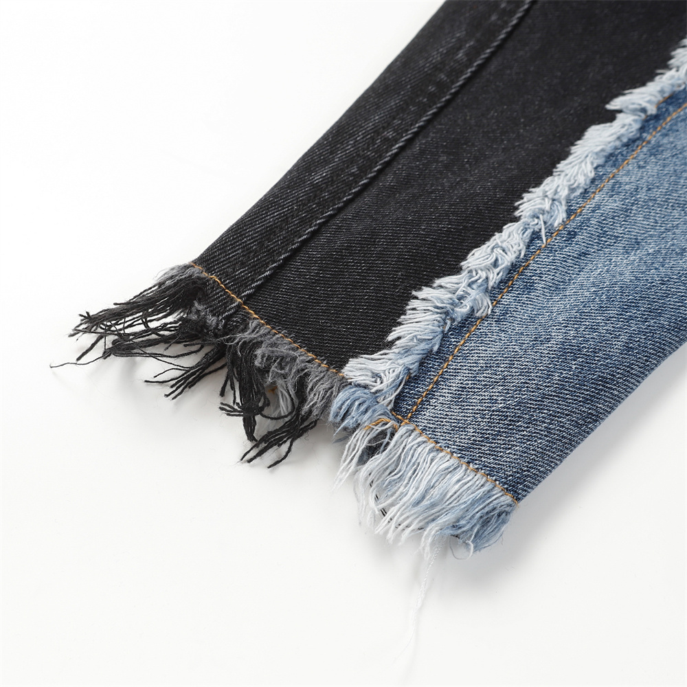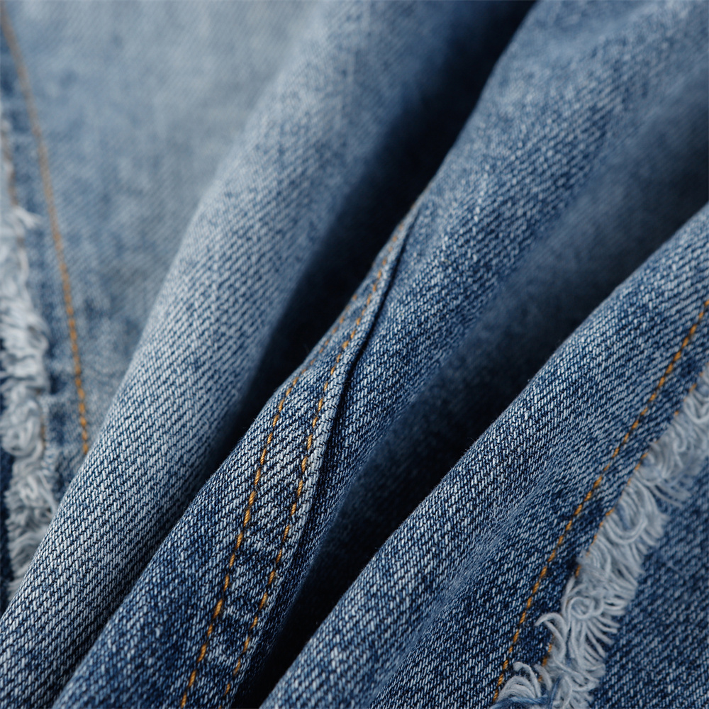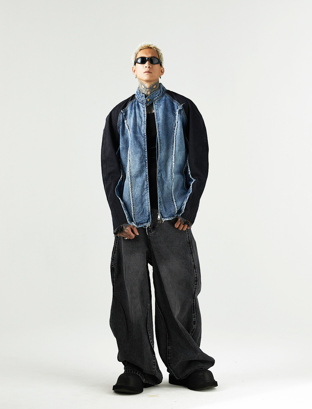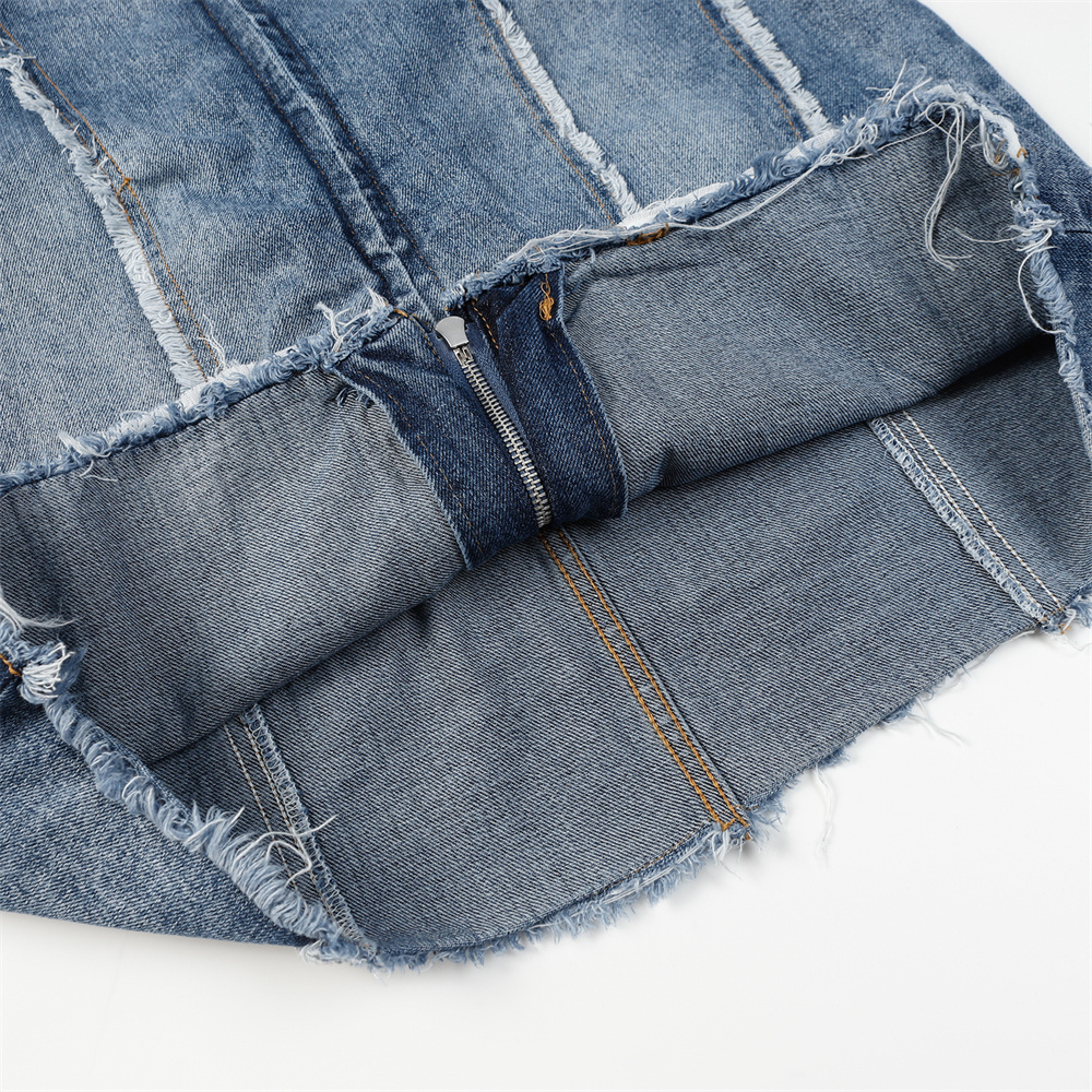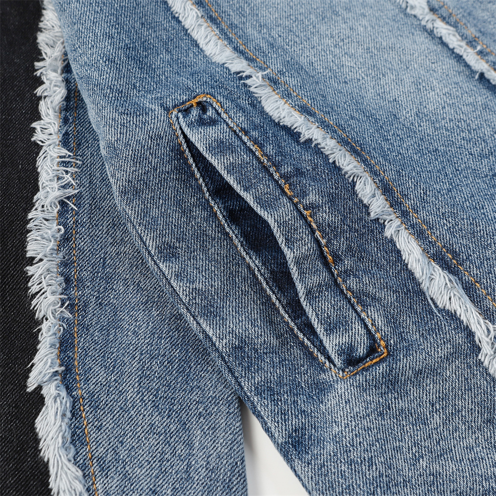 Heavy Industry Distressed Cat Raw-cut Edges Color Matching Machete Sleeve Wash Stand Collar Denim Coat