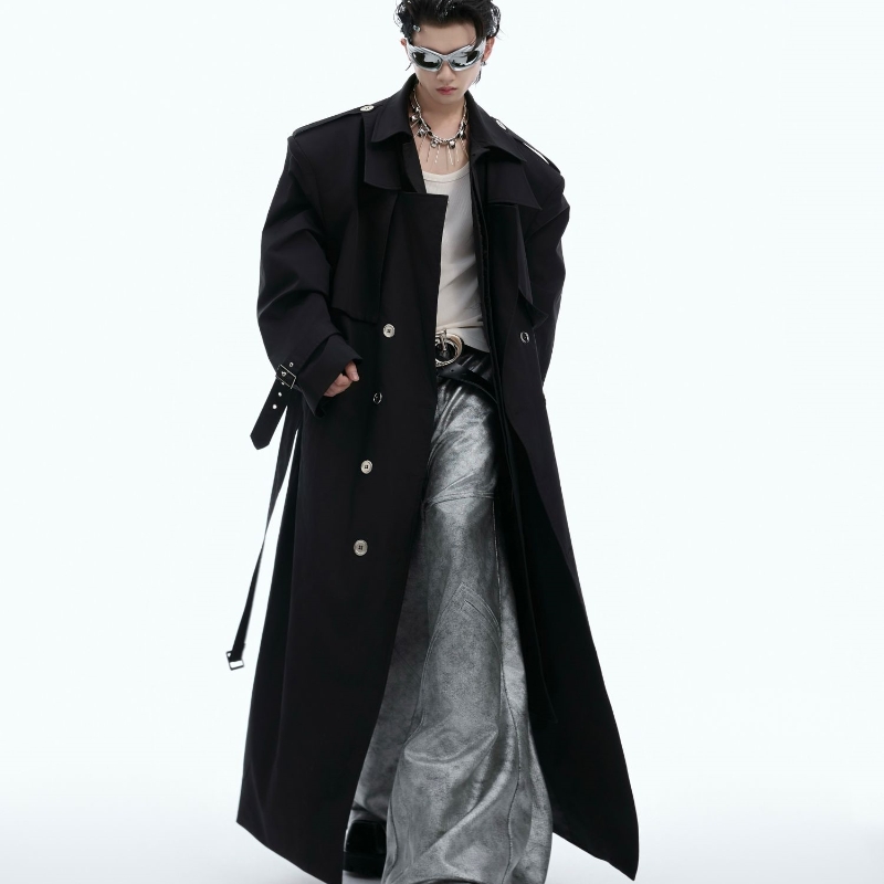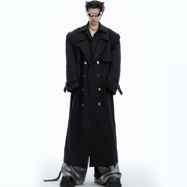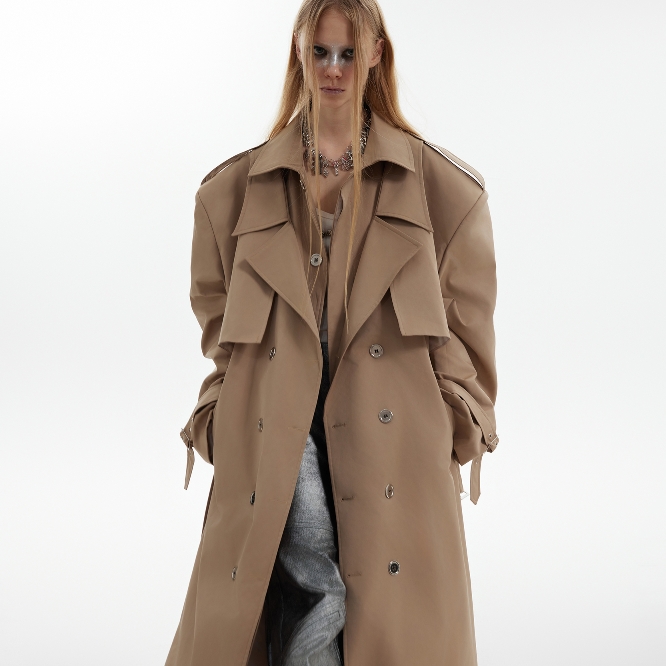 Heavy Industry Niche Deconstructs Fake Two-piece Padded Shoulder Trench Coat